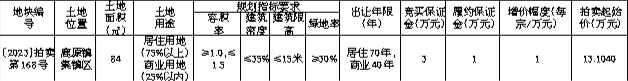 国有建设用地使用权拍卖出让公告 〔2023〕拍卖第168号
