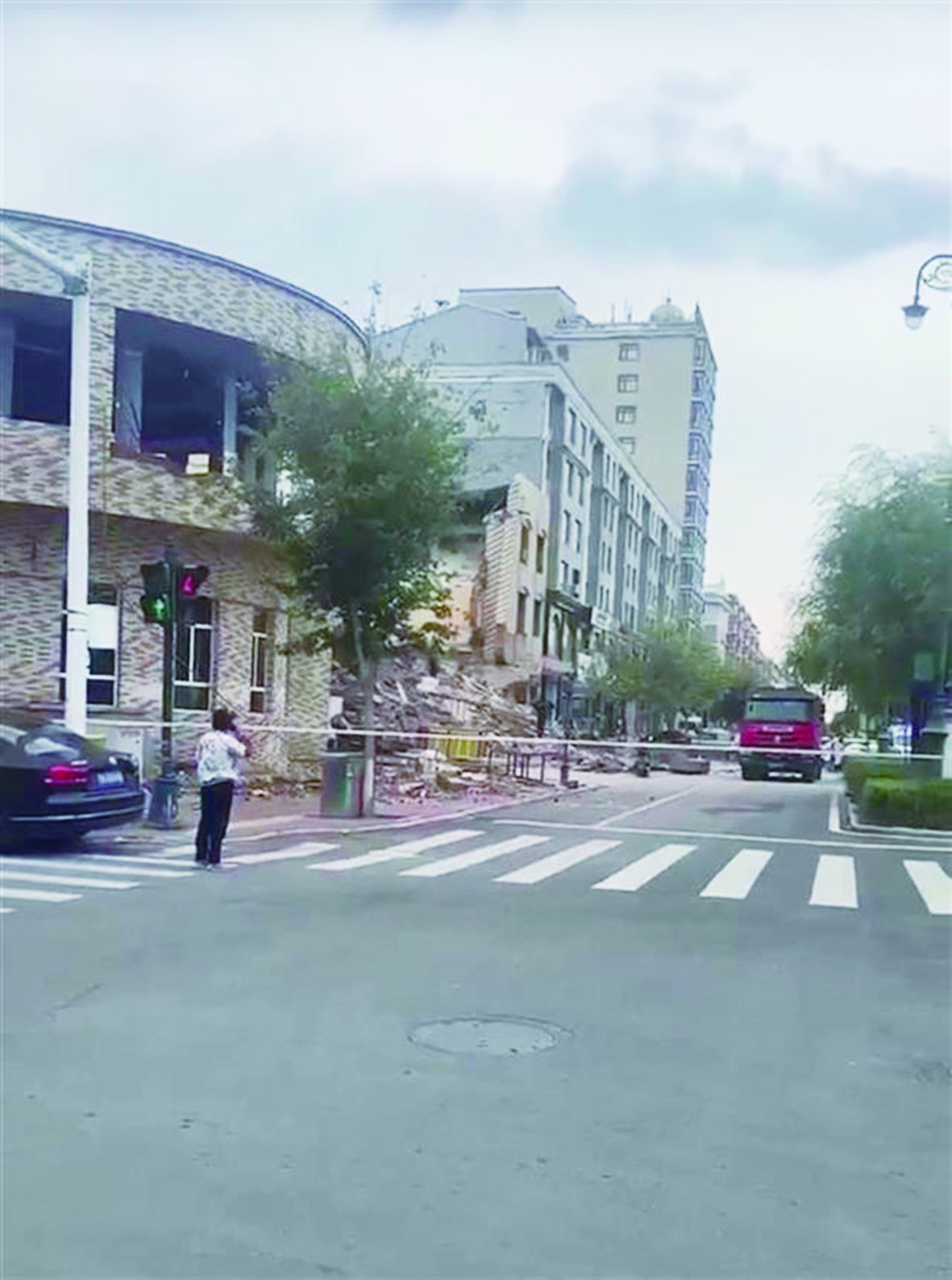 9月4日下午,黑龙江佳木斯同江市通港路一宾馆发生坍塌,当地公安和消防已到场处置,对现场周围实施交通管制。