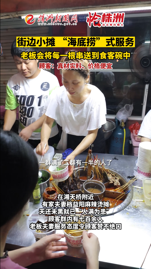 在石峰区湘天桥附近,有家夫妻档益阳麻辣烫摊,天还未黑就已“人满为患”。老板的微信顾客群内有七百余人,夫妻俩的服务态度令顾客赞不绝口。
