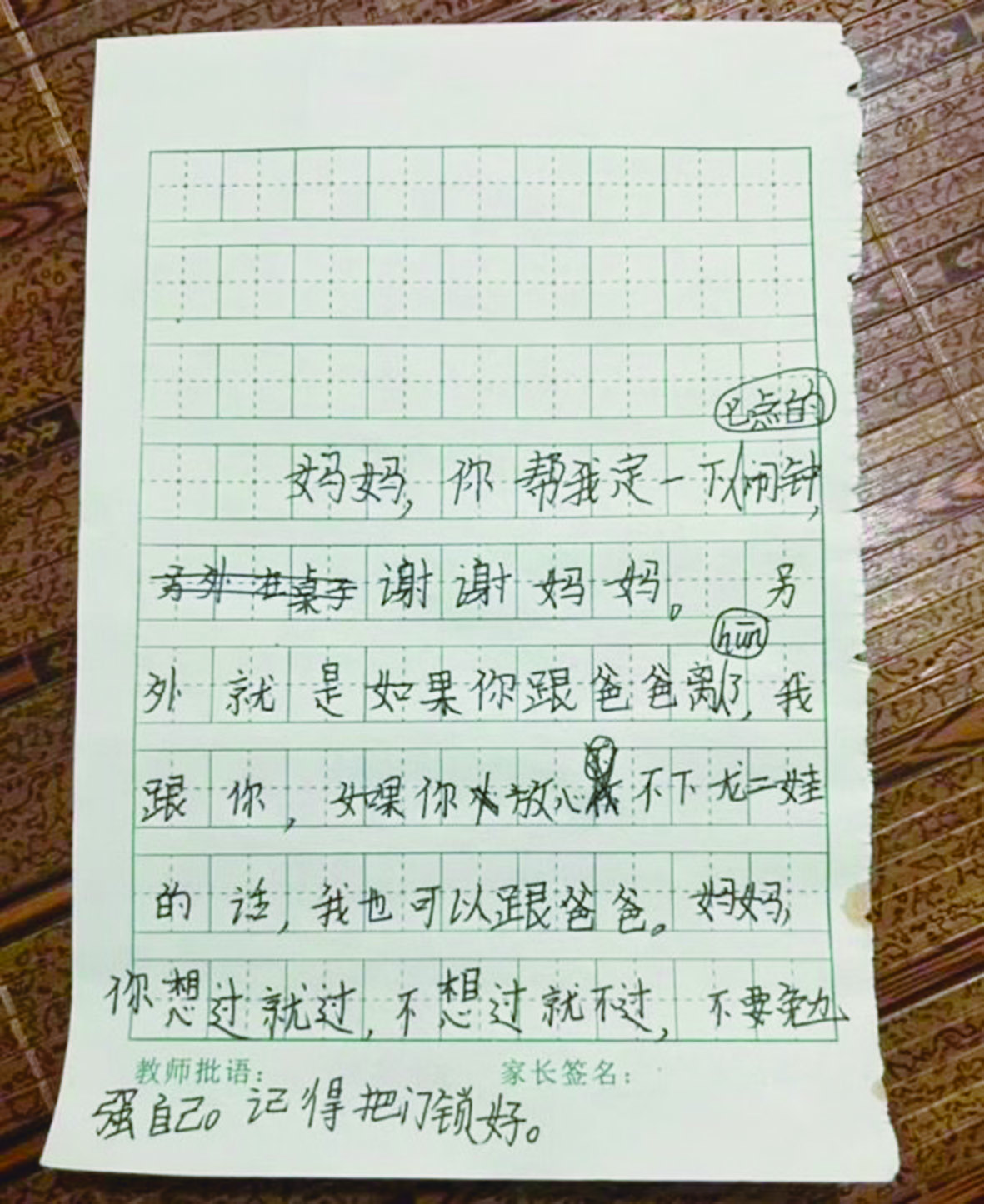 女儿的字条