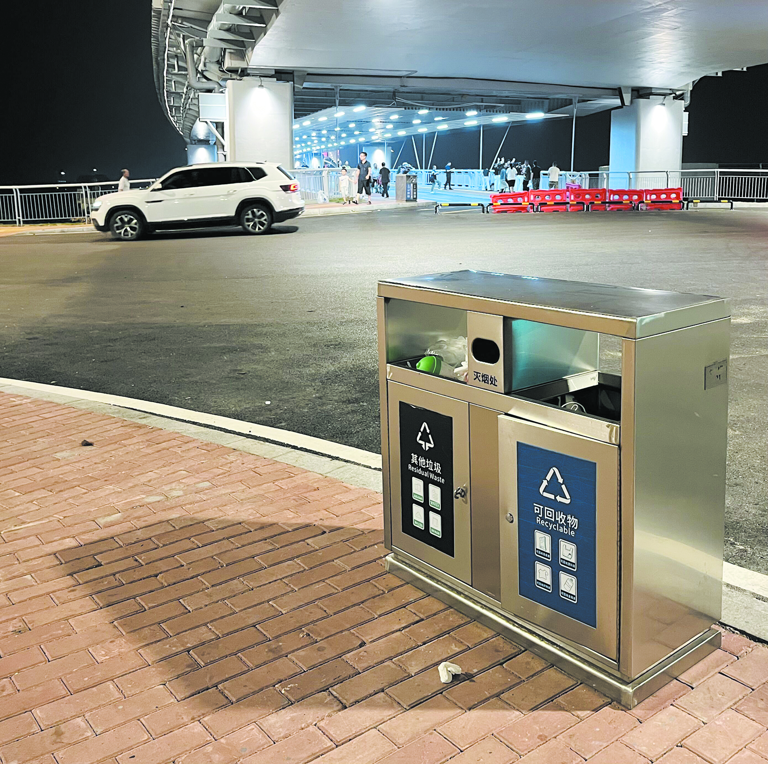 目前,中交公司正根据大桥特色设计配置垃圾桶,这些垃圾桶还未到位。石峰区城管局已紧急抽调25名城管队员,对桥面及沿线路段的车辆进行疏导、规范;在大桥旁的清水塘城市公园停车场设置临时夜市,引导摊贩入市经营;安排20名环卫工人加强清扫保洁;在大桥和夜市等人流量多的地方临时配备了20个垃圾桶;所有人员从每天下午4时坚守到晚上11时,确保清水塘大桥的市容环卫状况良好。