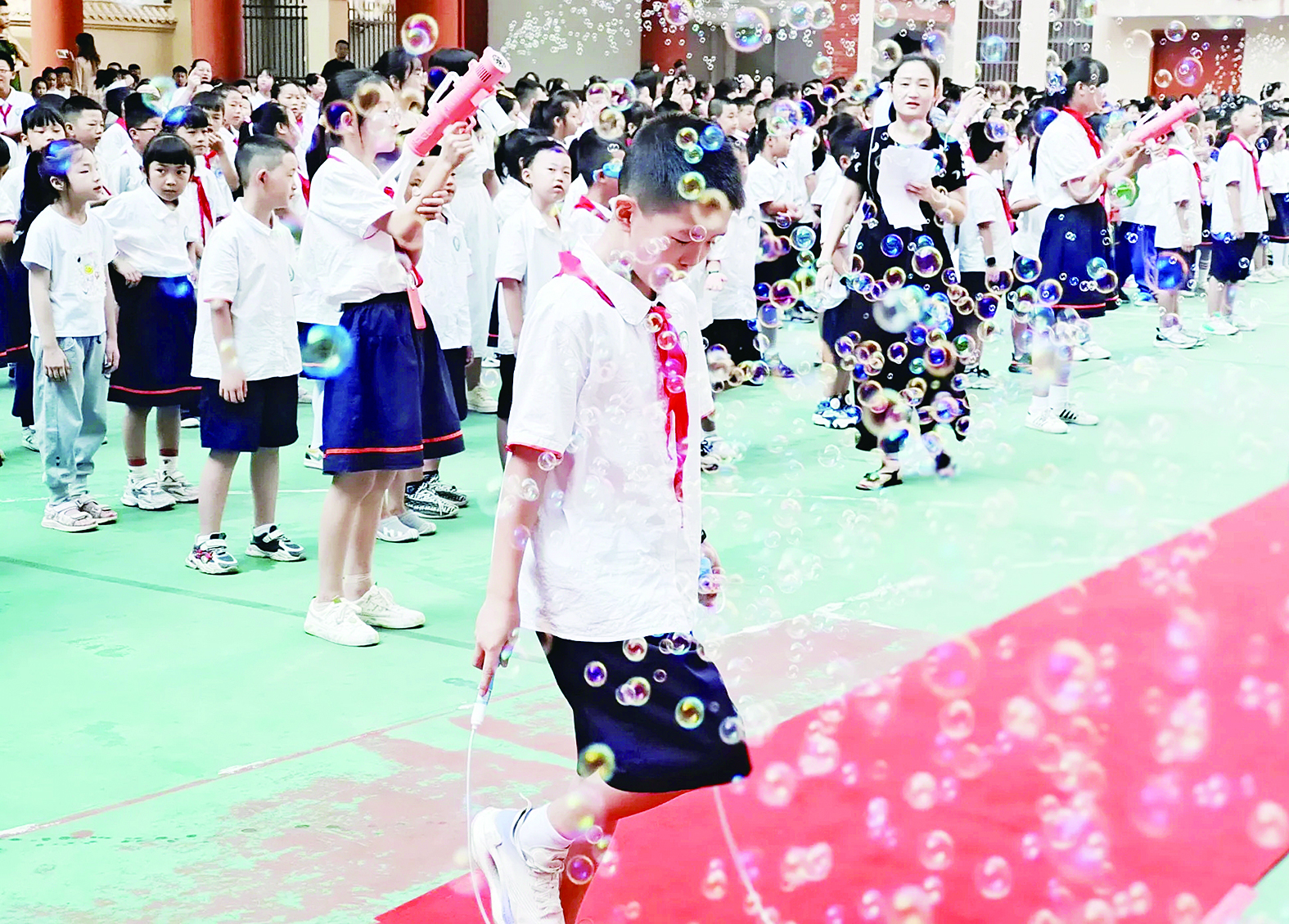 9月5日,芦淞区栗树山小学全体师生举行“与美同行,争做新时代好少年”秋季开学典礼。暑假运动“达人”们,还给同学们带来了一场别具一格的“花样跳绳”展示。