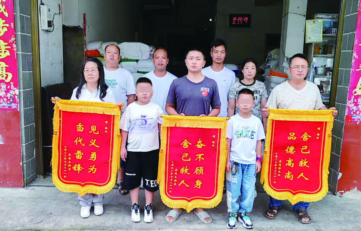 8月6日,获救孩子家人在当地派出所,打听到了谌华的家庭地址。三户人家组成一支将近30人的“亲友感谢团”,带着孩子,手拿锦旗,敲锣打鼓地上门表示谢意。