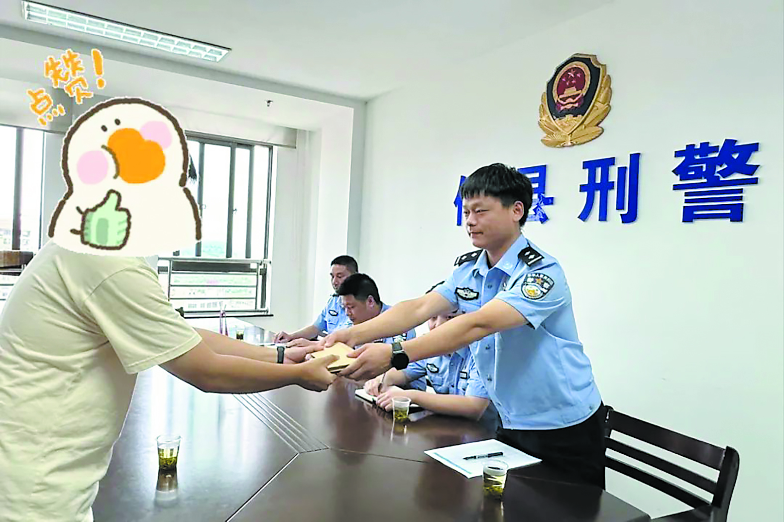 受害家长从民警手中领回被骗“学费”。通讯员供图