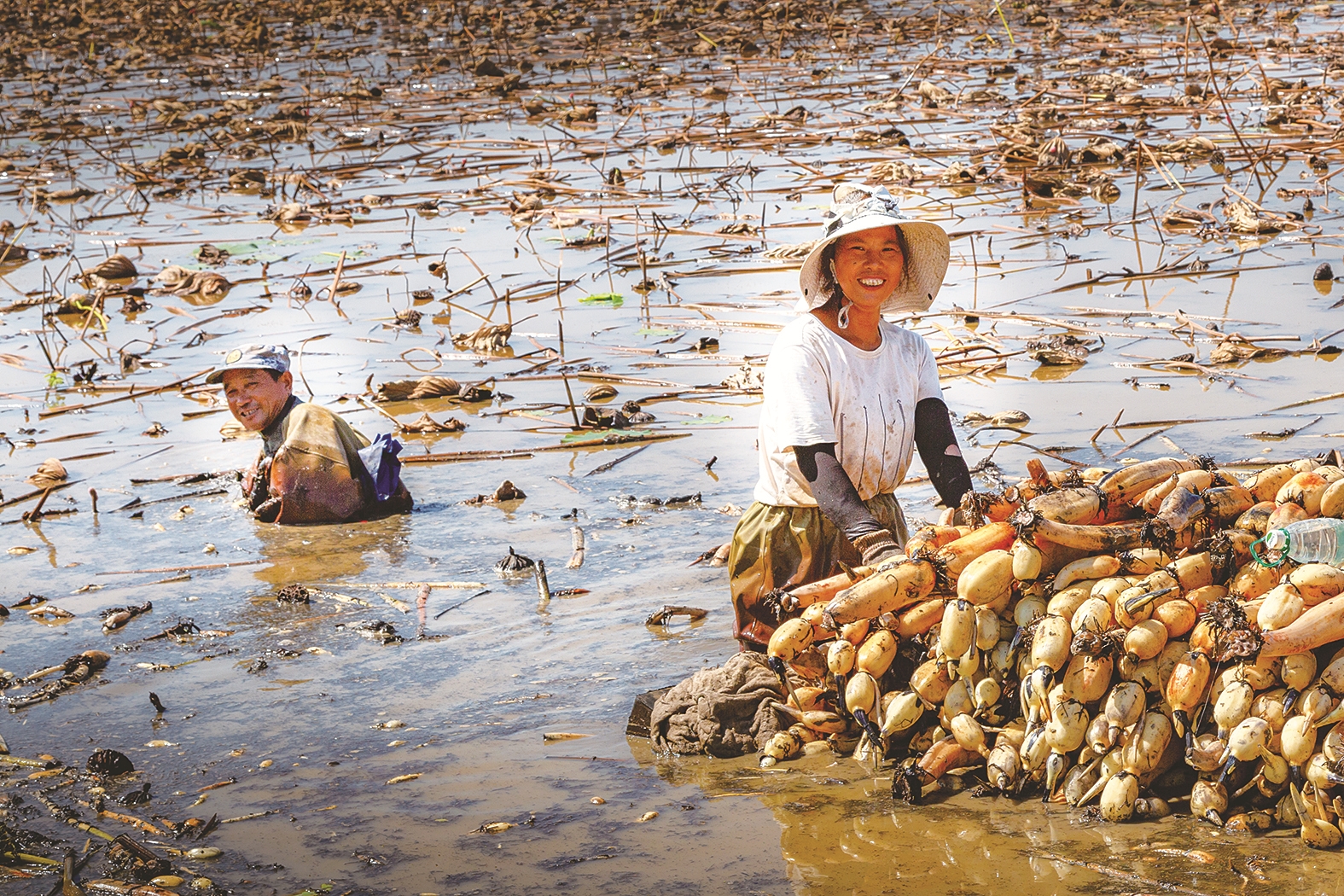 千里迢迢从安徽芜湖来到湖南株洲市天元区三门镇专业种植莲藕的汪建平,一干就是三十多年。他在这里租种了将近300亩农田,春夏秋冬,年复一年,下种育苗,除草施肥,采收销售,付出的是辛劳汗水,但收获的是快乐甜蜜。