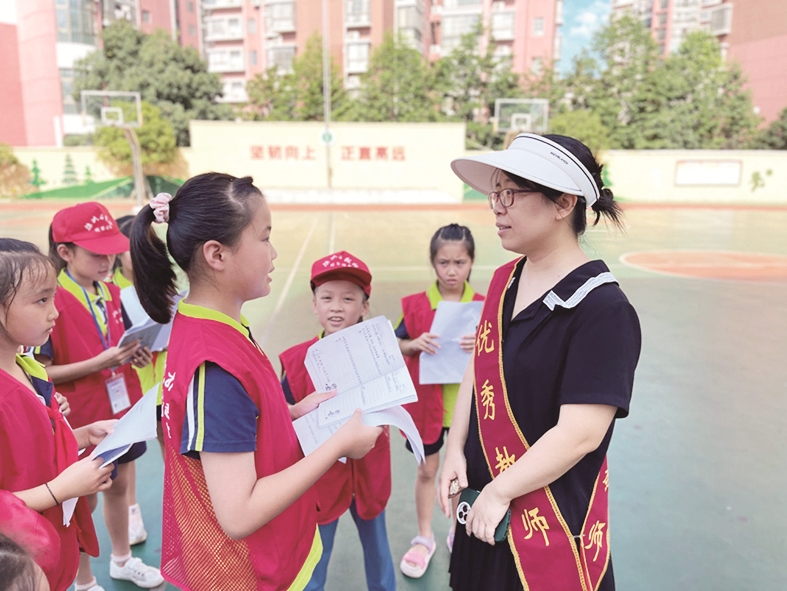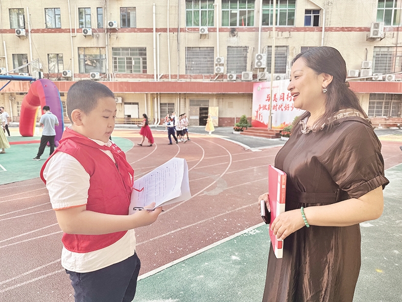 市二中青龙湾小学校长曾玉珺接受校园记者采访。记者/刘文 摄