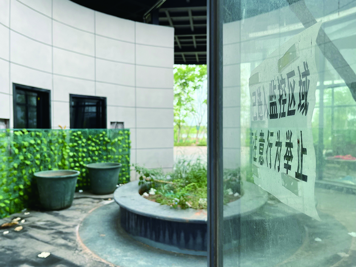清湖驿有两扇玻璃门用施工围挡挡住。花坛及周边卫生状况差,地面有粪便、尿渍、卫生纸,异味重。
