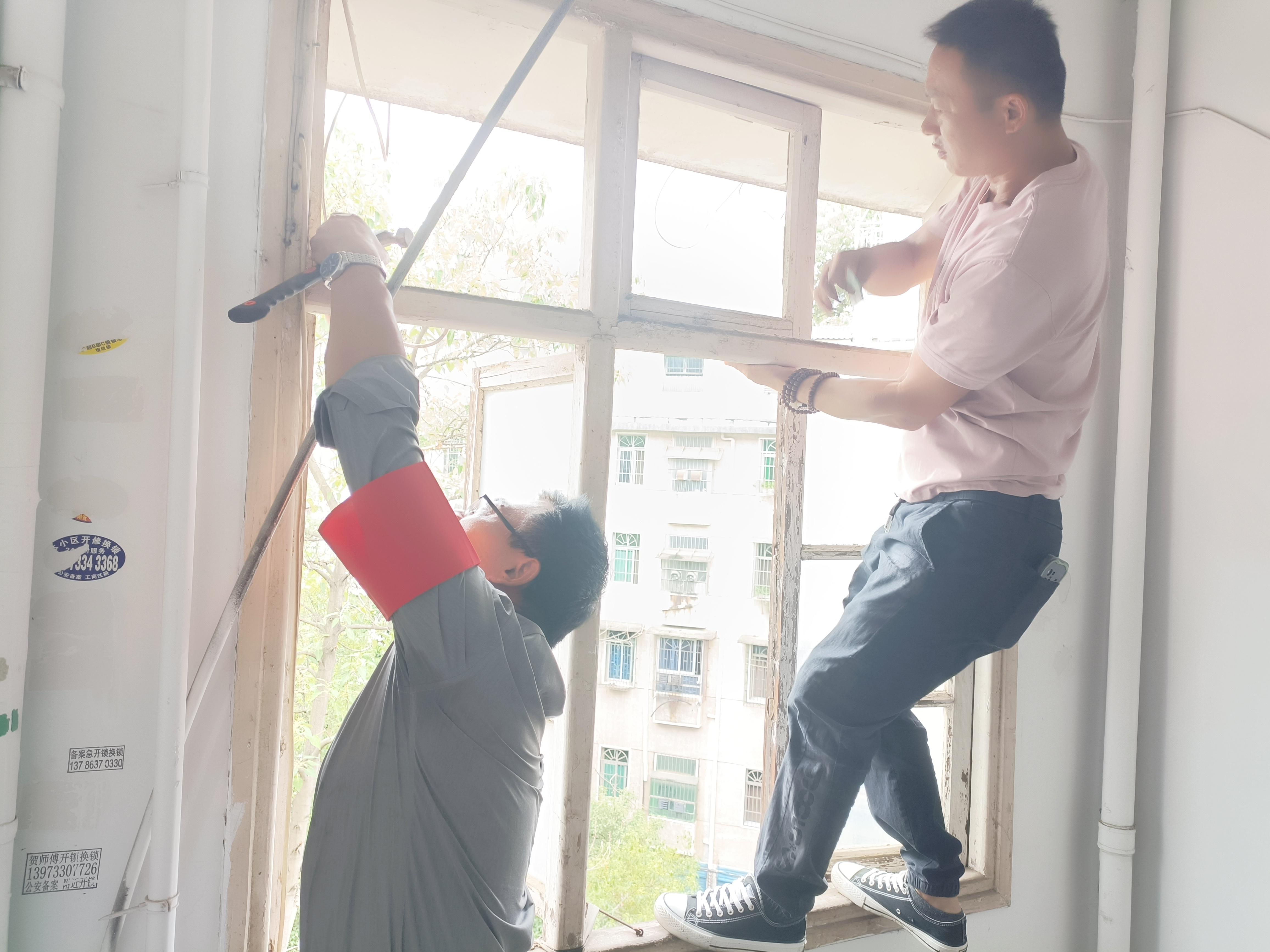 得知该情况后,芙蓉社区迅速行动,将小区内14栋房子近400层单元楼层的公共区域窗户全部修整完毕,成功解除居民出行及居住的安全隐患。