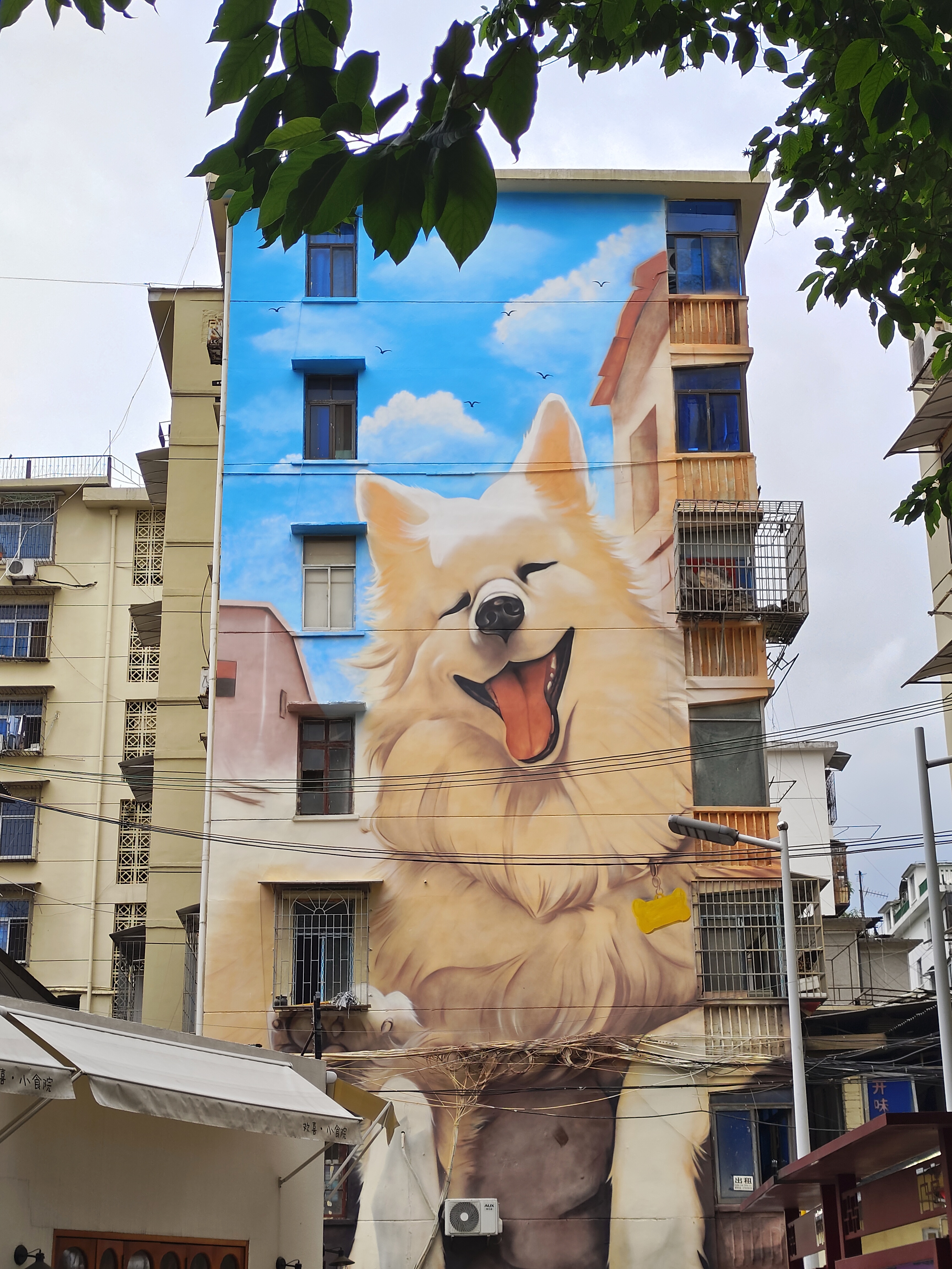 文艺巷街区位于芦淞区建设街道何家坳社区,包含中心广场株百后巷(千金巷)、文艺路、老武装部路、百纺路、唢呐巷及社区内部街巷。9月15日,走进这条不足1000米的巷道,一只狗狗“爬”上墙,摆着俏皮的姿势,微笑看着来来往往的行人。这个巨幅彩绘,将狗狗的可爱放大数倍,也为这条老街增添了温馨与活泼。有路人骑车经过,也忍不住驻足,与巨型狗狗合影。