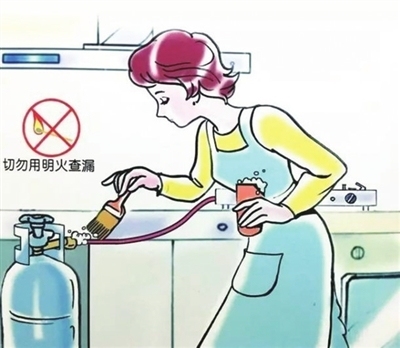 时常用肥皂水刷粘燃气的管道接口处、开关、软管、阀门,观察有无气泡产生,检查燃气是否泄漏;使用燃气器具时,如发现火焰呈现黄色,说明燃烧异常,这时一定要开窗通风;若家中长期无人居住,应关闭自用燃气阀门。
