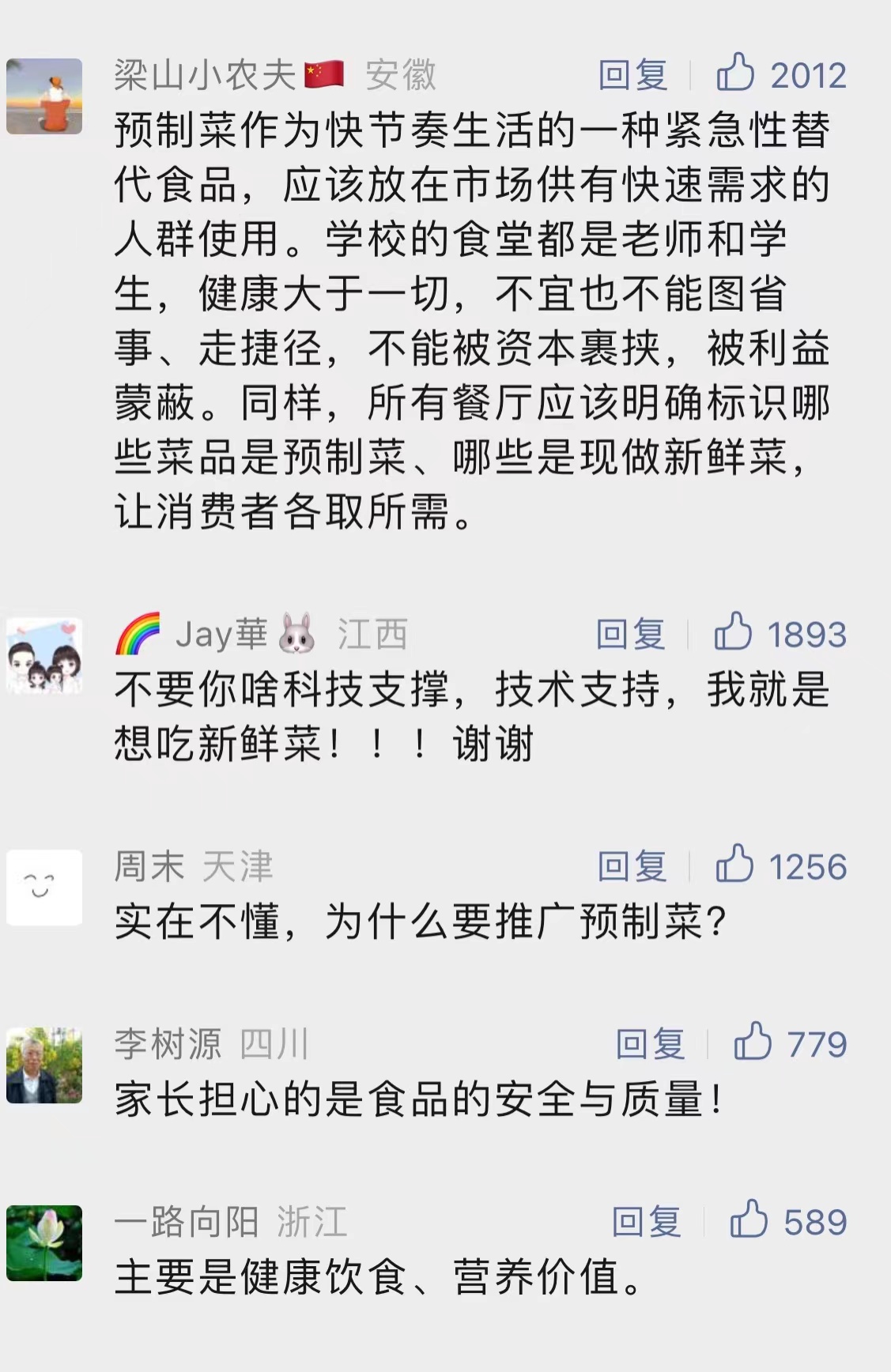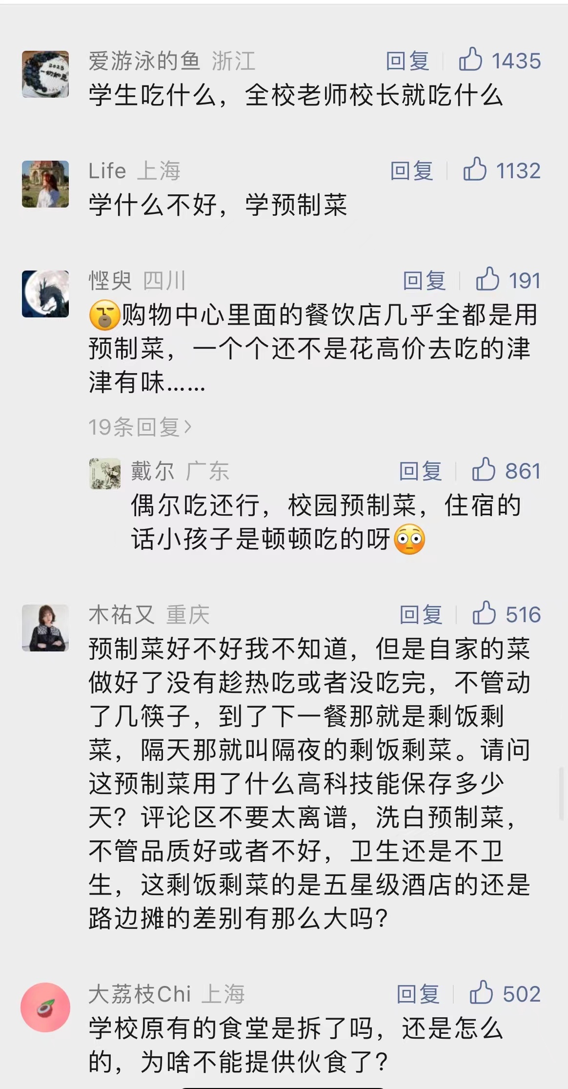 有家长认为,学校可以使用预制菜,但是必须公开透明,让大家监督,让大家可以选择。“预制菜可以吃,但不适合所有人,在孩子饭菜上不应该节约时间和成本。”有的家长则表示,坚决抵制半成品的预制菜,如果发现孩子学校使用,她会考虑辞职每天送饭。