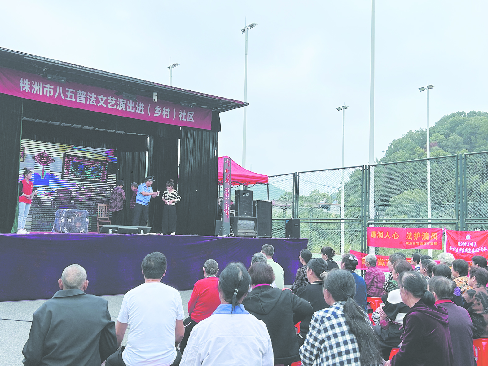 9月21日至22日,市司法局组织轻骑兵普法文艺小分队,到芦淞区白关社区、荷塘区天鹅湖社区、石峰区九郎山村、天元区湘湾社区,开展株洲市2023年“八五”普法文艺演出进乡村(社区)活动。演出以《普法之歌》拉开序幕,随后快板、小品、戏曲、情景剧、歌舞等10个有关法治宣传的节目依次上演,精彩纷呈,引来社区居民纷纷驻足观看,现场阵阵掌声。此举既丰富了群众的文化生活,又增强了群众的法律意识,让群众在欢声笑语中学到了法律知识,领悟到了法治精神。
