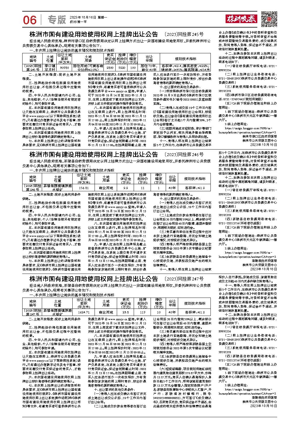 株洲市国有建设用地使用权网上挂牌出让公告 〔2023〕网挂第246号
