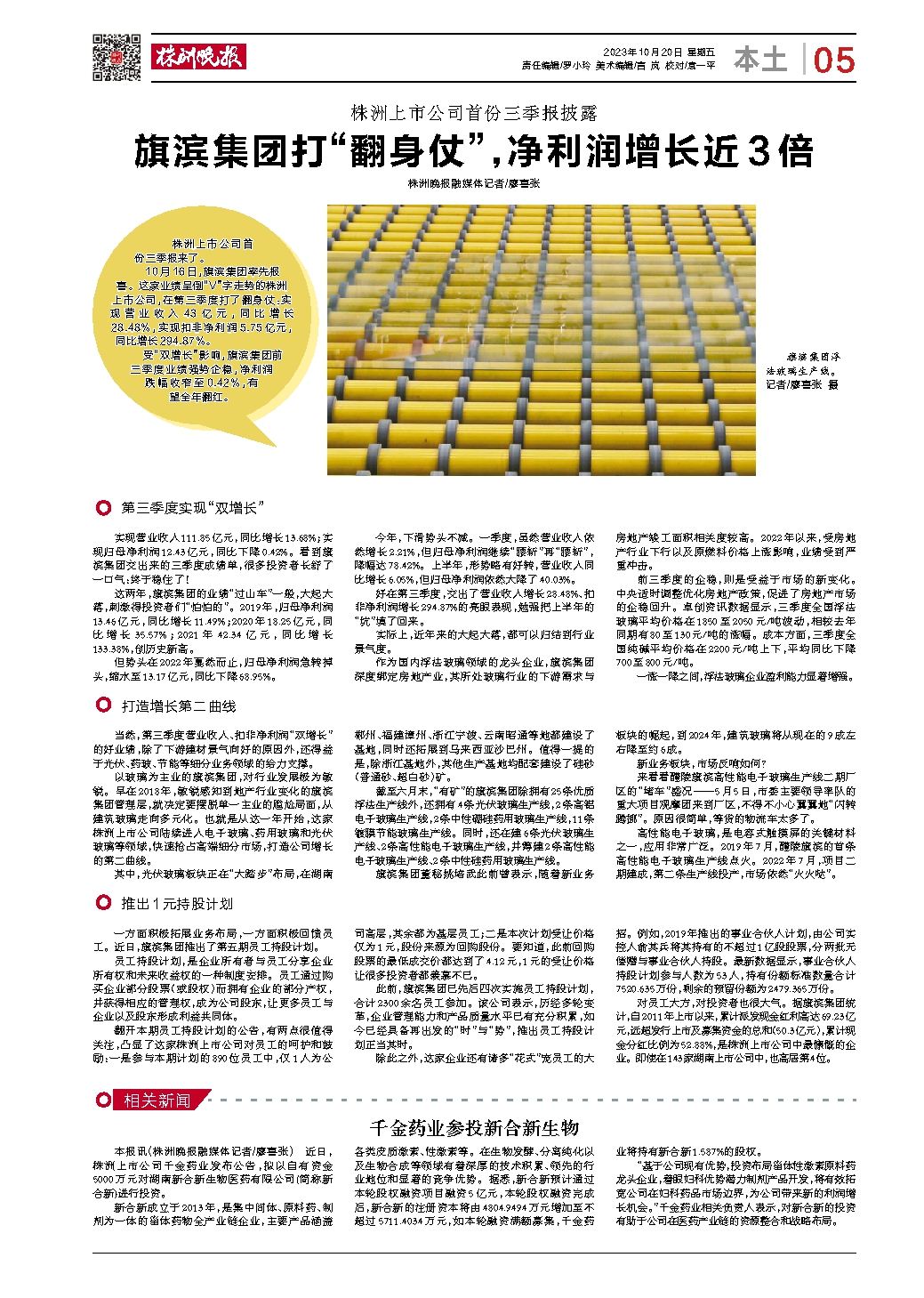 旗滨集团打“翻身仗”,净利润增长近3倍