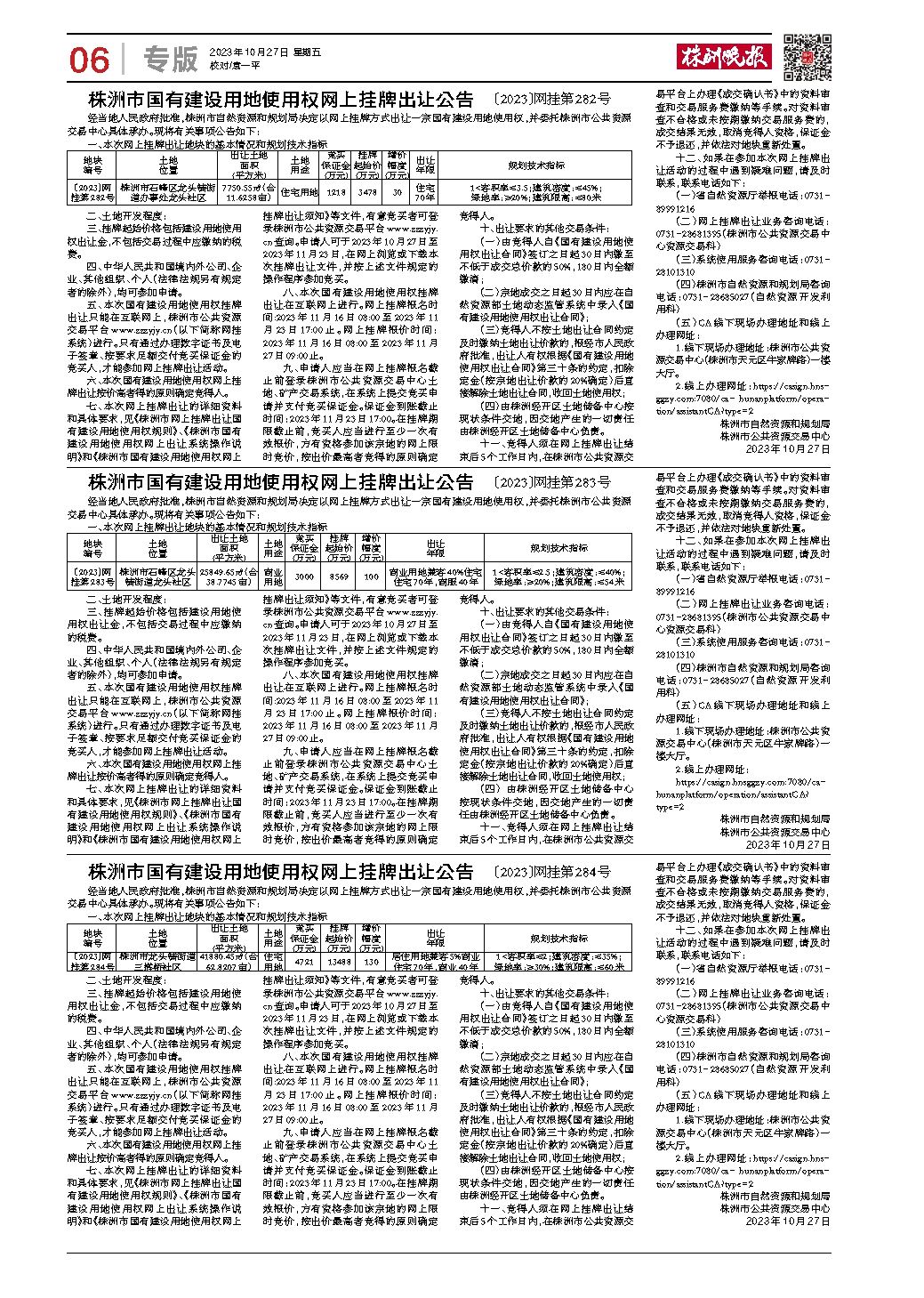 株洲市国有建设用地使用权网上挂牌出让公告 〔2023〕网挂第282号