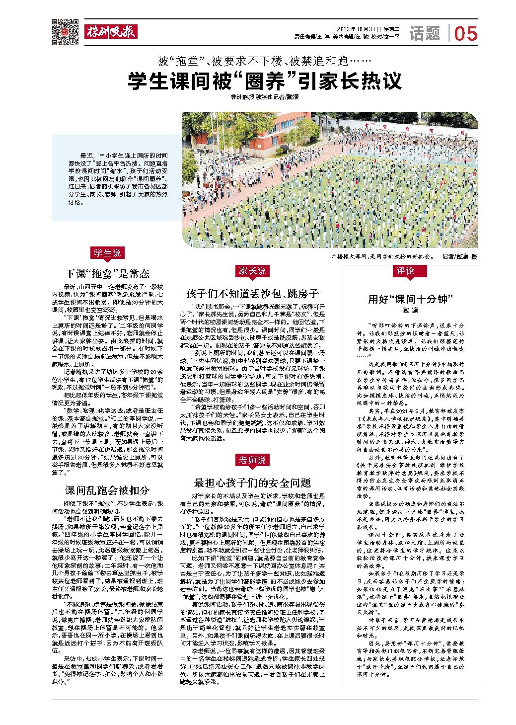 学生课间被“圈养”引家长热议