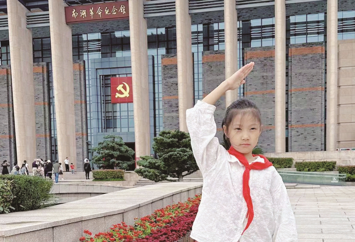 小学生走访嘉兴南湖革命纪念馆,向先烈致敬。记者/戴凛 摄