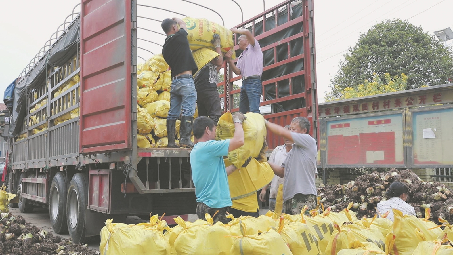 攸县宁家坪镇双田村,村民们正忙着采收新鲜的香芋,通过物流向外省发货。2019年,双田村引进香芋种植,村民已经掌握种植技术,今年村里通过“合作社+农户”的模式,共种植香芋近500亩,带动全村近百人就近就业,其中脱贫户20余人。据介绍,目前该村每天安排一车的香芋发往广西,新鲜的香芋价格每公斤可卖到3.2元钱。