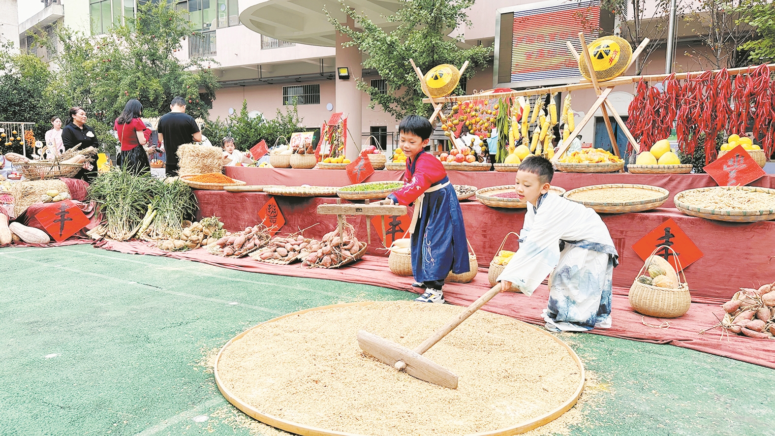 上周,芦淞教育幼稚园举行首届“晒秋节”。孩子们在园里认识农作物,体验农活,让他们明白每一粒粮食的来之不易,认识到惜粮节粮的重要性。