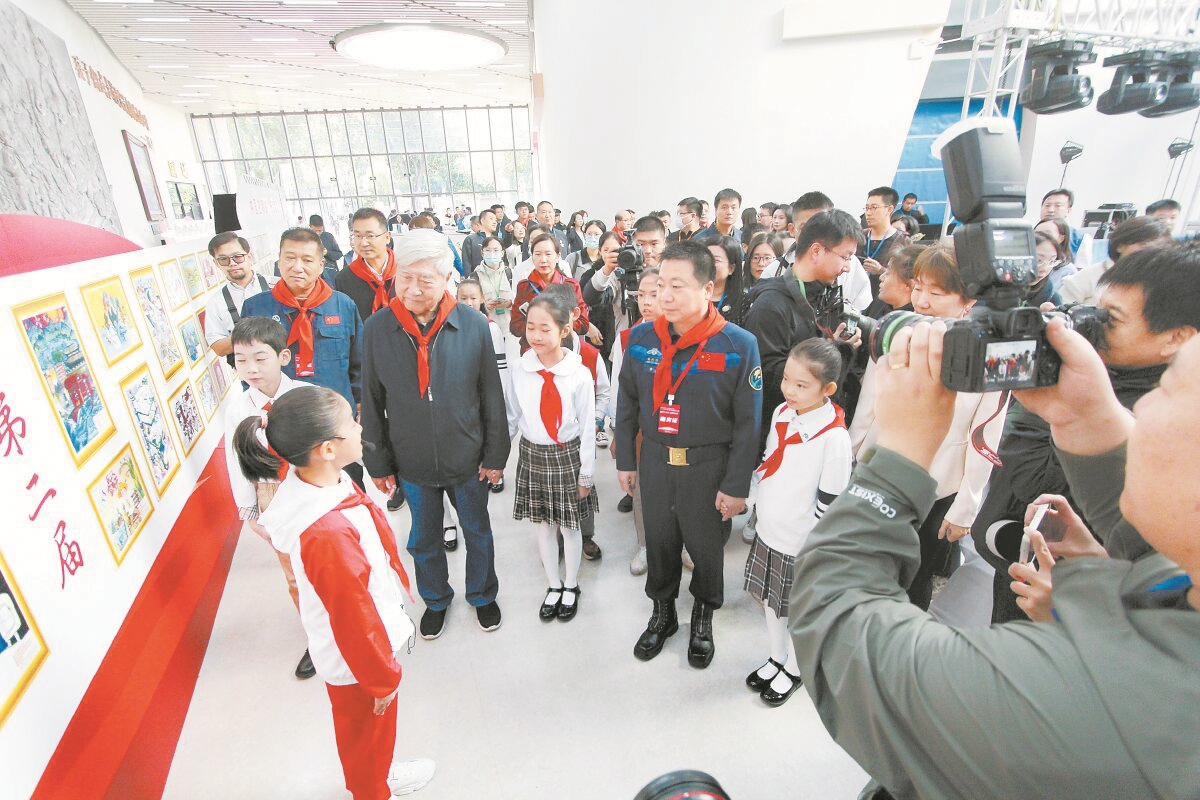 为纪念我国首次载人飞行任务成功20周年,昨天上午,在北京市少年宫,航天英雄杨利伟及多名航天专家与少先队员畅聊航天话题,鼓励他们加入到航天队伍中来。