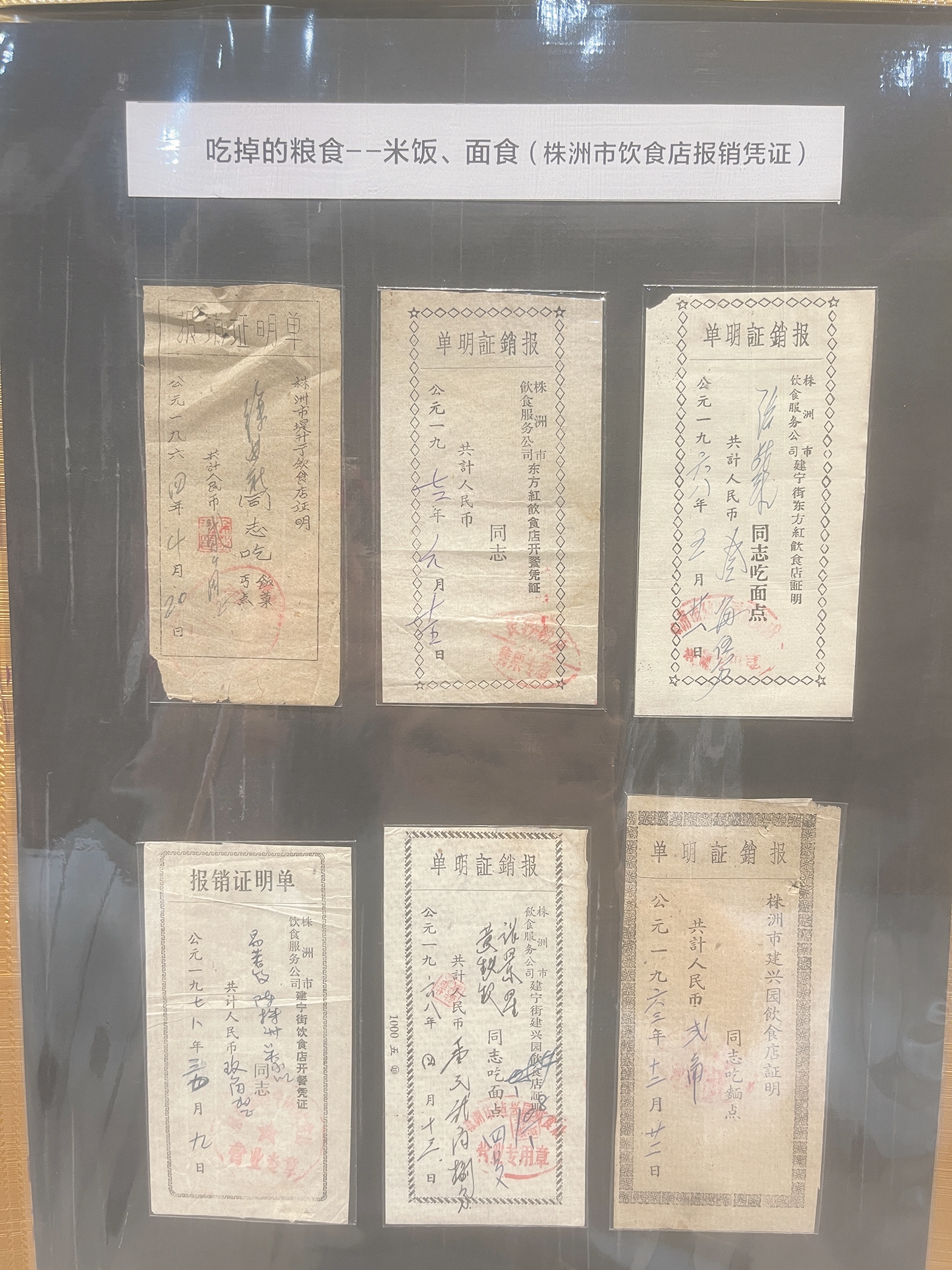 当年人们吃饭的报销凭证 。记者/伍靖雯 摄