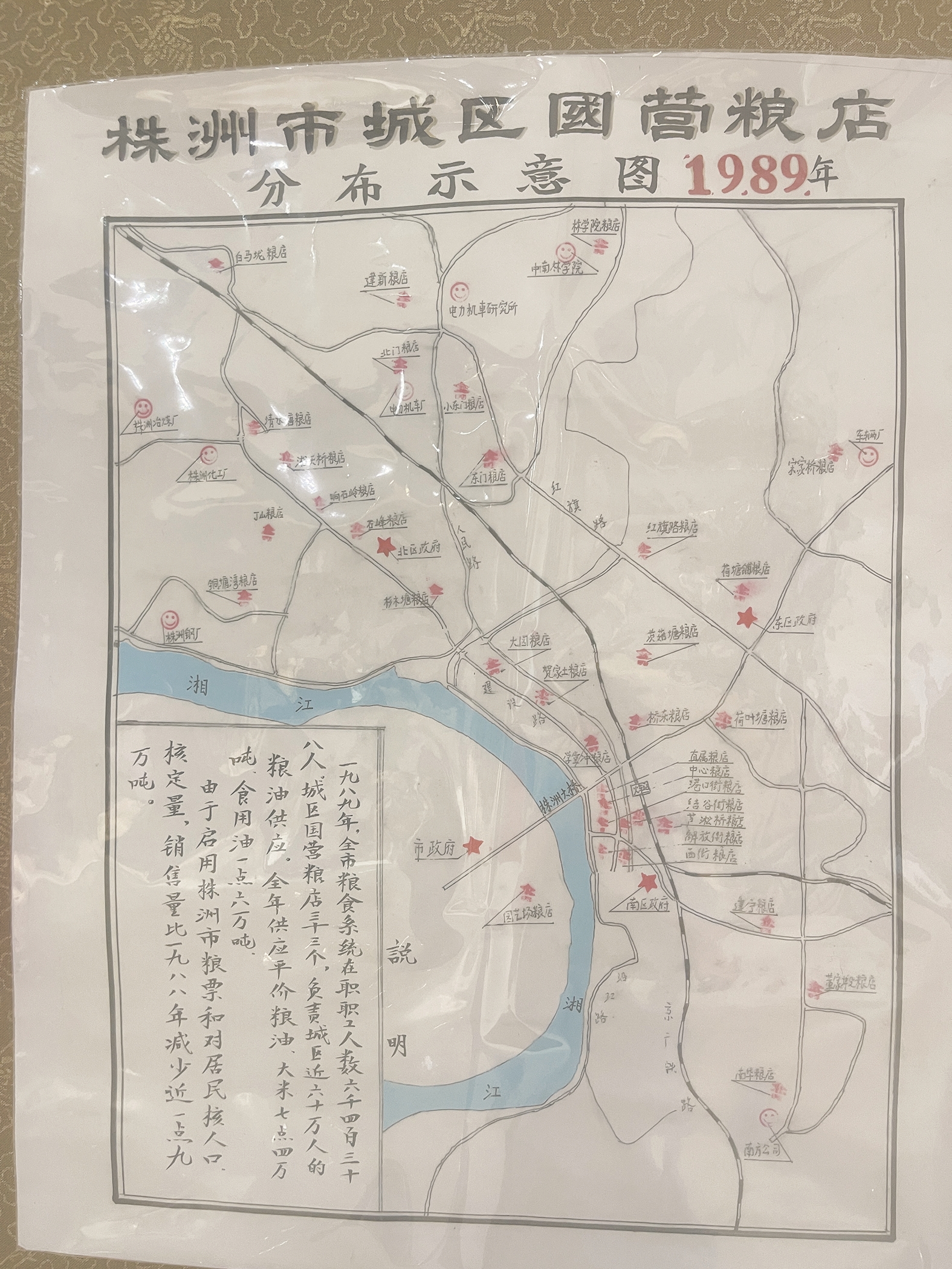 1989年城区国营粮店分布图。 记者/伍靖雯 摄