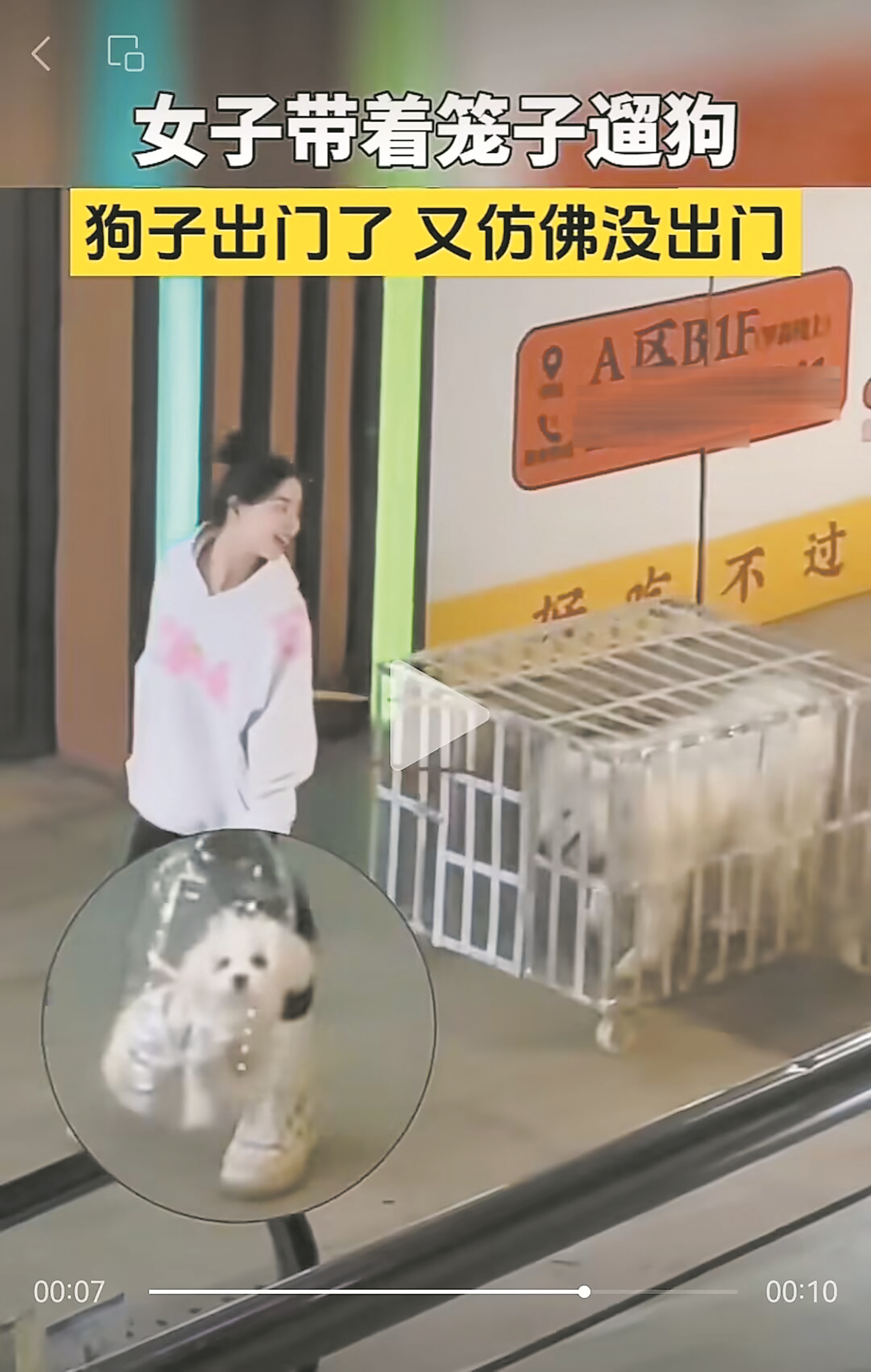 10月23日,重庆一名女子在马路上遛狗视频在网上引发传播,画面上一位女子带着两只白色宠物狗在闹市区闲逛,一只小狗装在塑料瓶里,一只大狗套在移动铁笼里,吸引了许多市民的目光。与此同时,重庆另一位宝妈在网上晒出了自己带着铁扳手遛娃的视频,引发了热议。