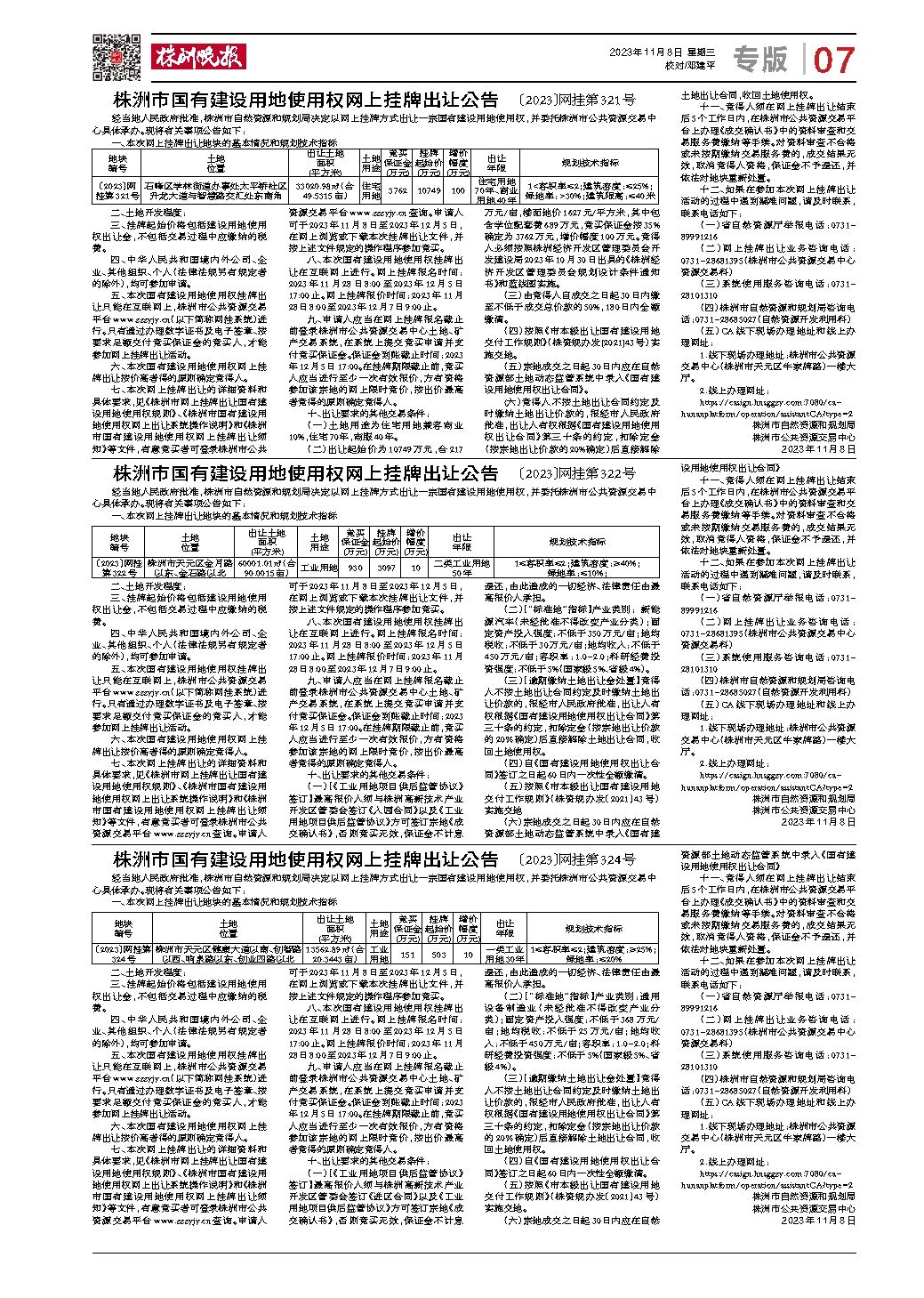 株洲市国有建设用地使用权网上挂牌出让公告 〔2023〕网挂第321号