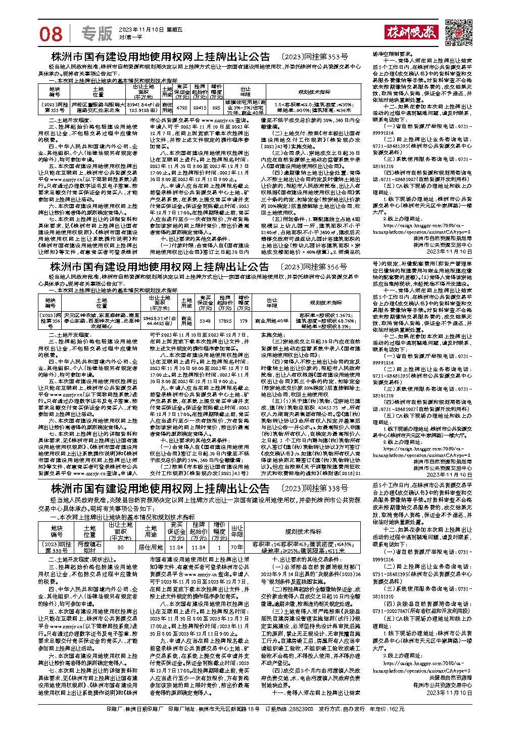 株洲市国有建设用地使用权网上挂牌出让公告 〔2023〕网挂第356号