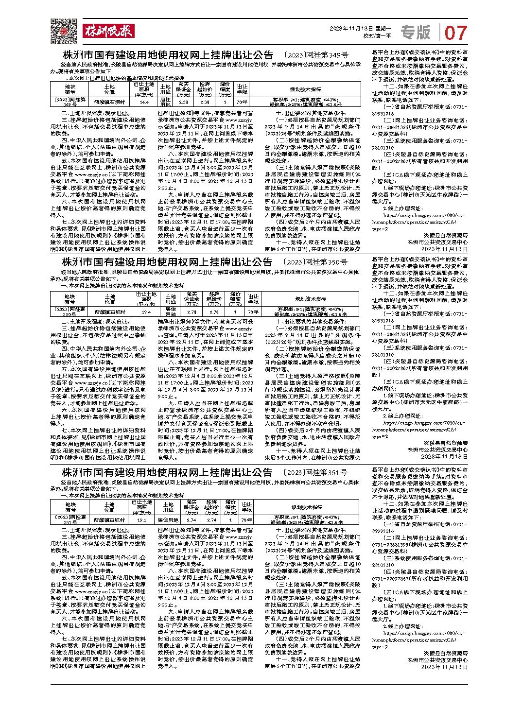 株洲市国有建设用地使用权网上挂牌出让公告 〔2023〕网挂第349号