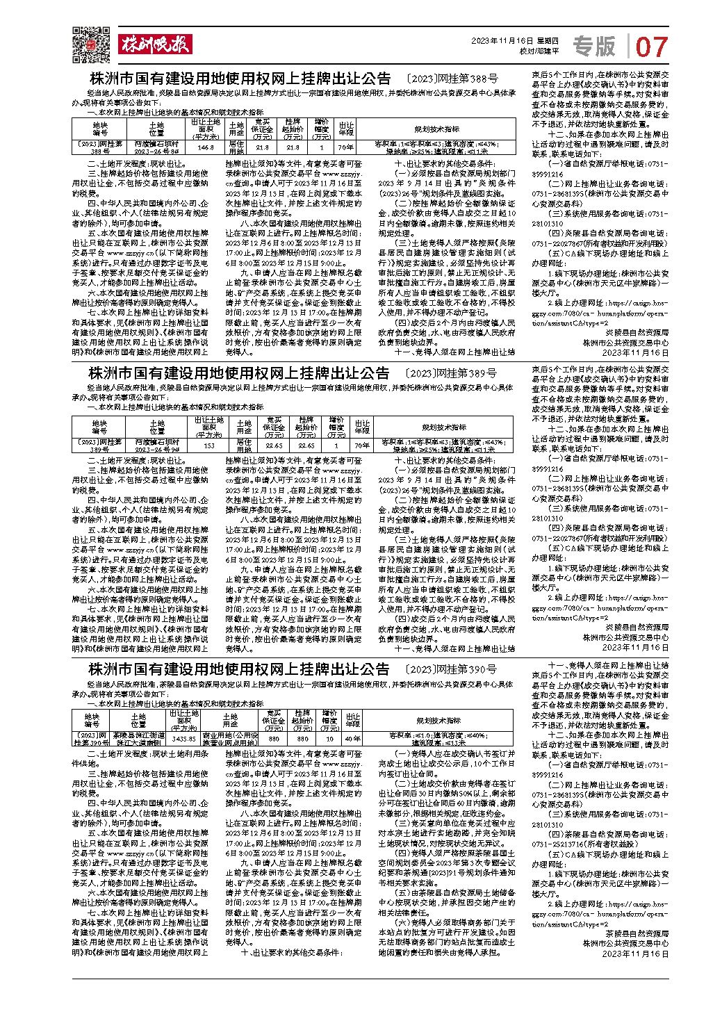 株洲市国有建设用地使用权网上挂牌出让公告 〔2023〕网挂第389号