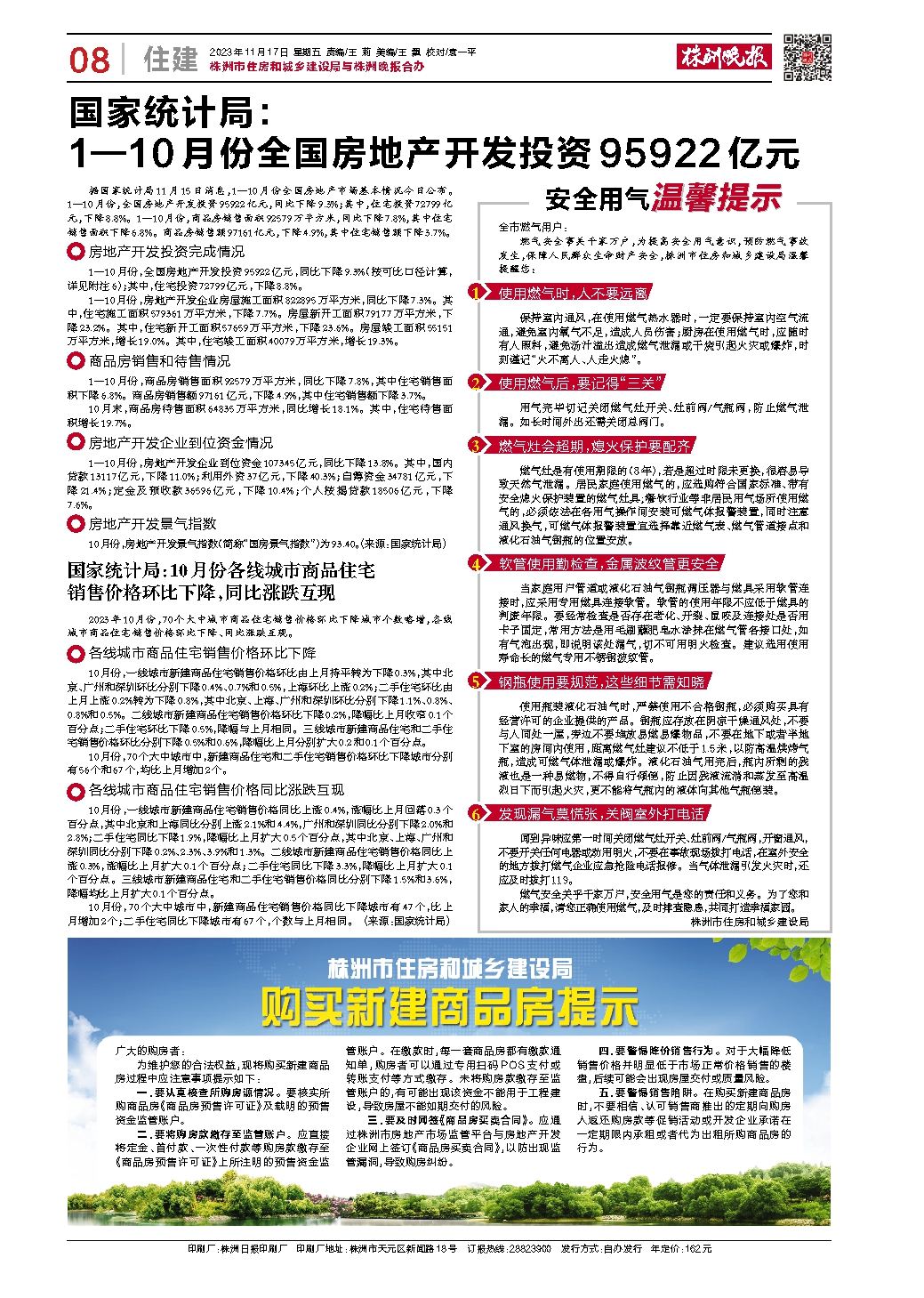 国家统计局:1—10月份全国房地产开发投资95922亿元
