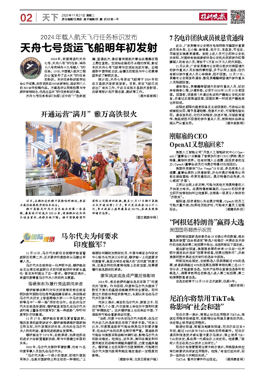 2023年11月21日《株洲晚报》