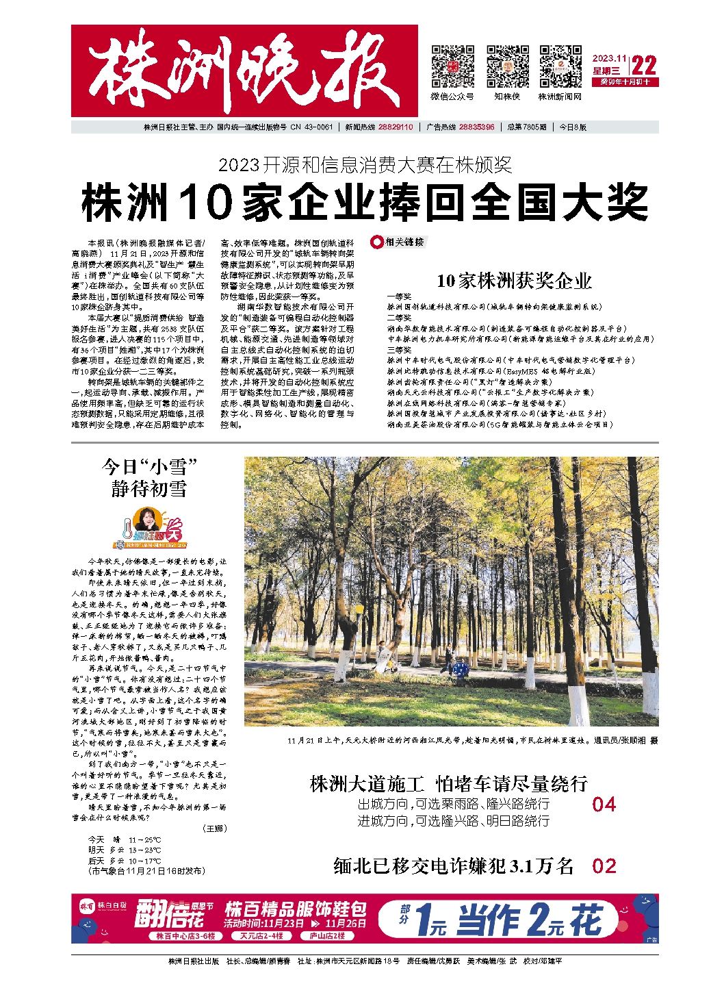 2023年11月22日《株洲晚报》