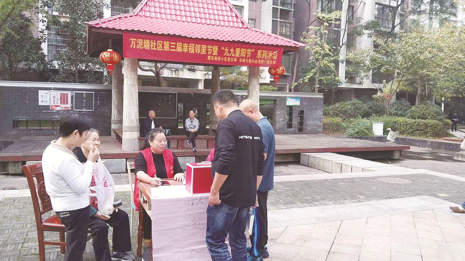 30日,樱花地带小区,居民捐款现场。通讯员供图