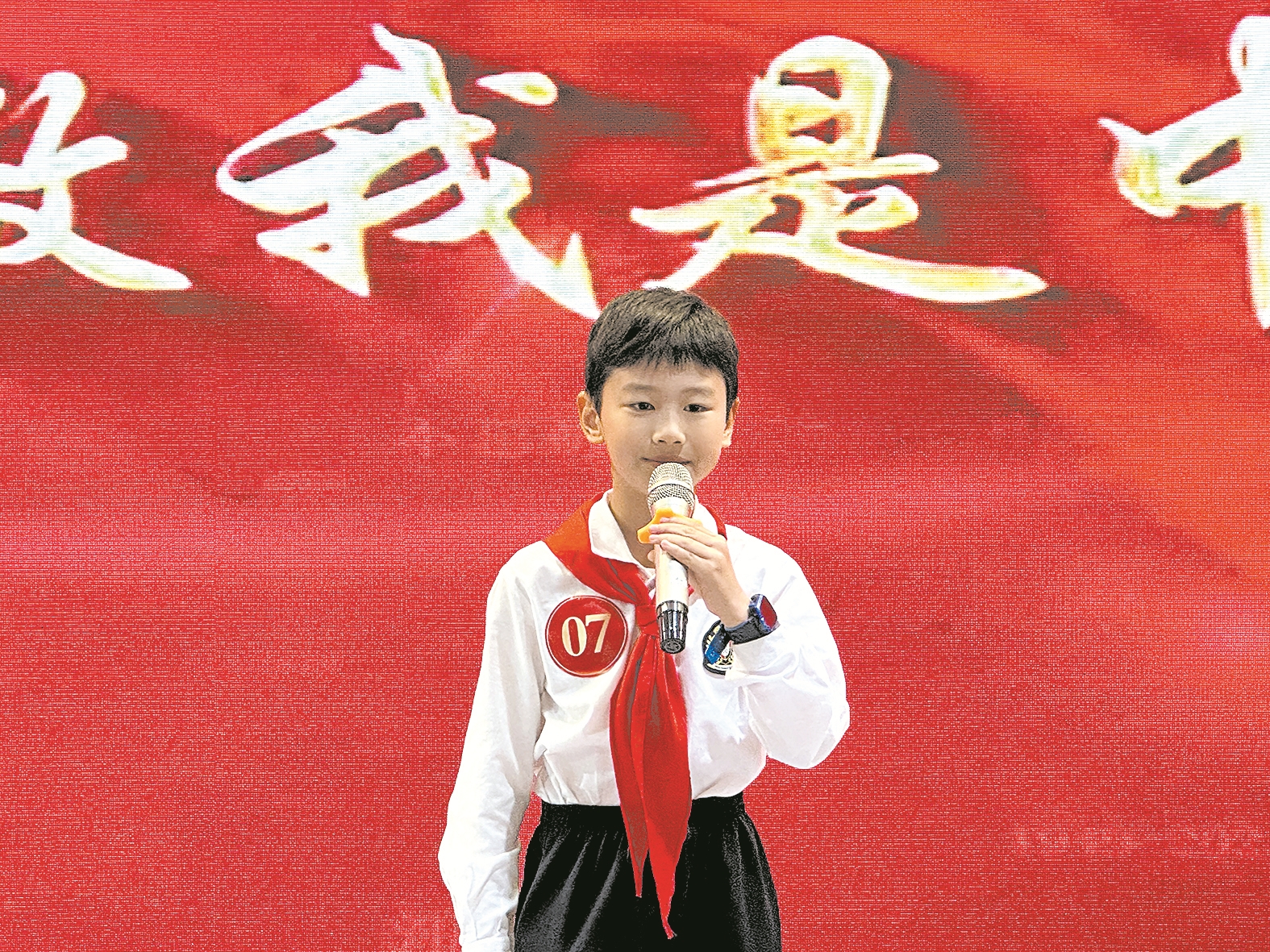 校园记者们先后上台展开角逐:活泼有趣的自我介绍、多姿多彩的才艺展示、机智灵活的现场采访。比赛现场“火药味”十足,校园记者纷纷拿出看家本领,在舞台上尽情展示才艺。感人至深的朗诵将新时代少年的爱国之情表现得淋漓尽致,戏剧、葫芦丝、二胡等独具中国风特色的表演更是让观众耳目一新,成为本次大赛的亮点。
