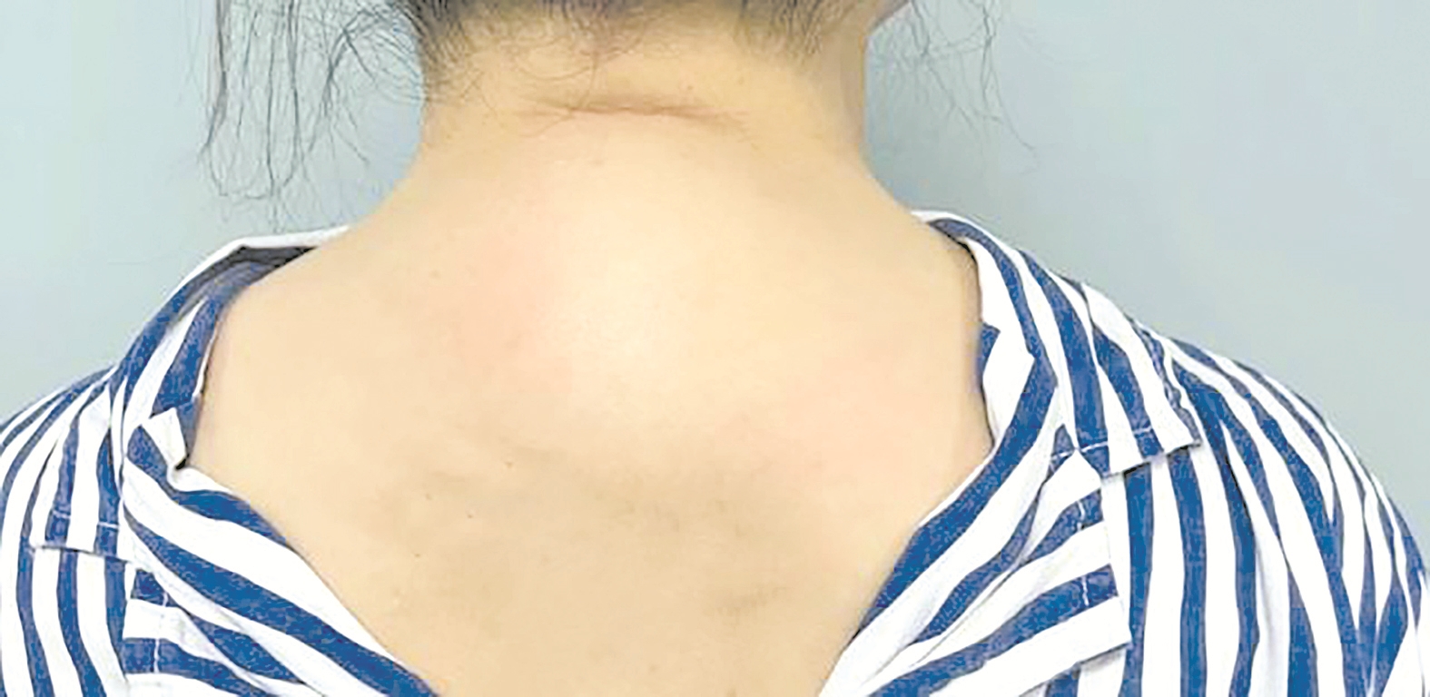 “富贵包”在医学上并非单独一个疾病的名称,它好发于人体第7颈椎部位(大椎穴附近),表现为隆起的软包块。“富贵包”一般好发于青年女性中,尤其是上班族、低头族,或体态稍有肥胖者。