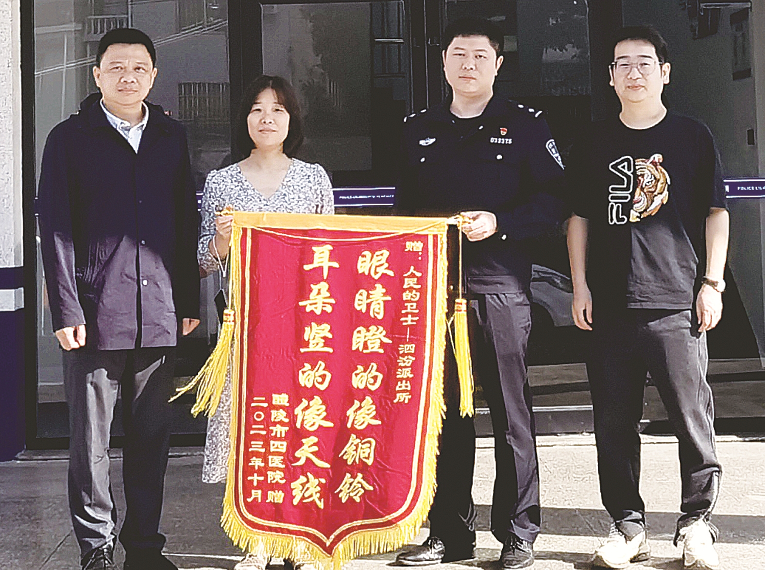 “眼睛瞪得像铜铃,耳朵竖得像天线!”近日,醴陵市四医院工作人员带着一面锦旗来到醴陵市公安局泗汾派出所,感谢民警早上出警帮医院找回走失老人。