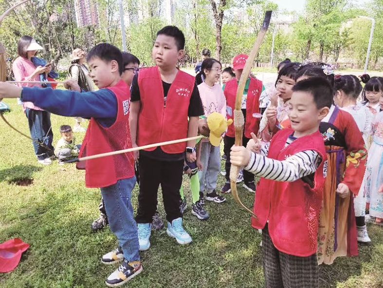 二十四节气主题活动之清明 校园记者在清明节气体验民俗活动射柳、蹴鞠。