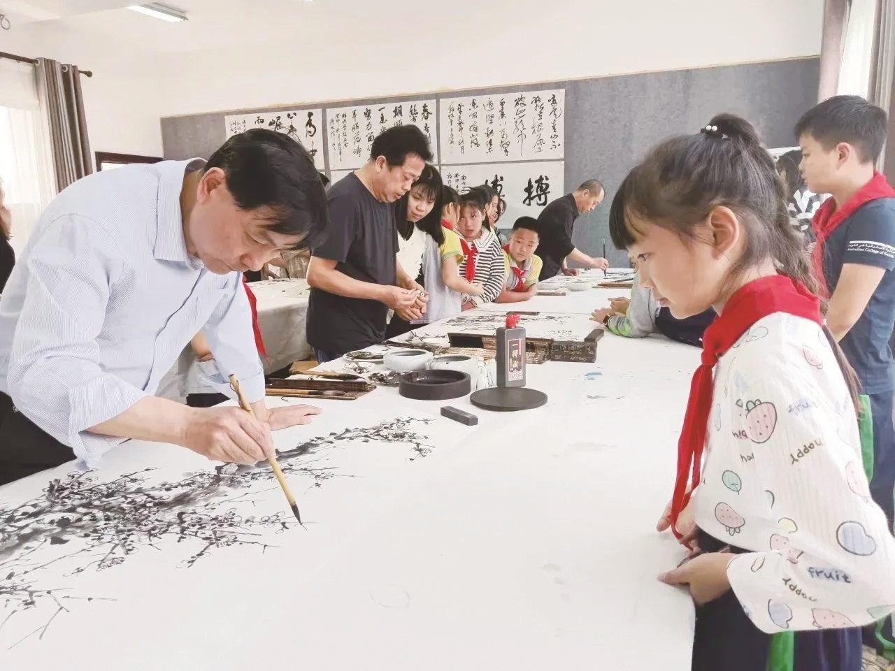 弘扬劳模精神,传承书画艺术,创新传统美术教学。日前,株洲市“周宏桥劳模创新工作室”邀请八位书画艺术家走进芦淞区淞欣学校,开展“书画进校园,翰墨润桃李”主题活动。