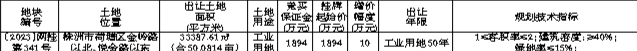 株洲市国有建设用地使用权网上挂牌出让公告 〔2023〕网挂第341号