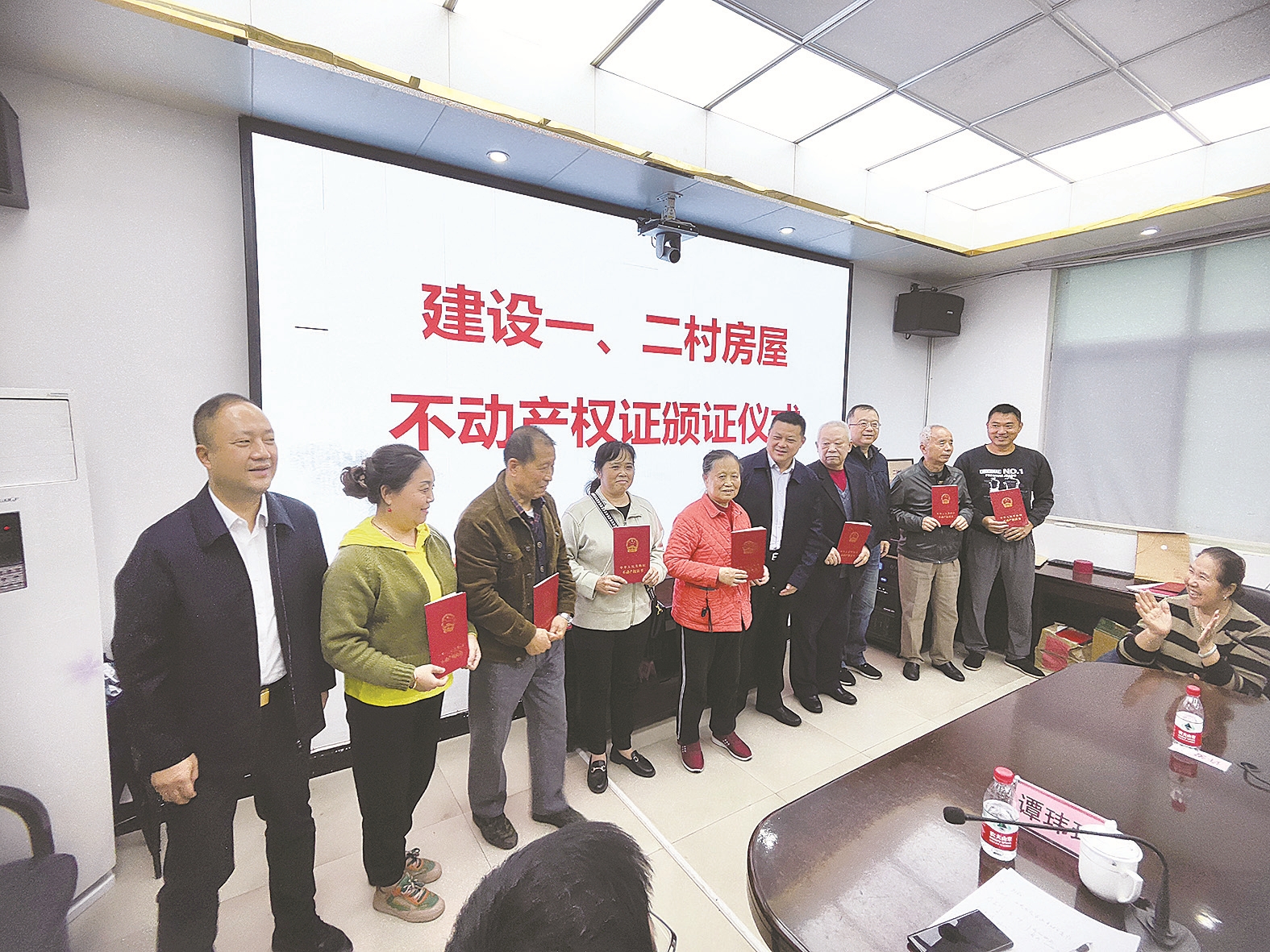 居民们拿到了苦等多年的不动产证,喜笑颜开。记者/杨凌凌摄