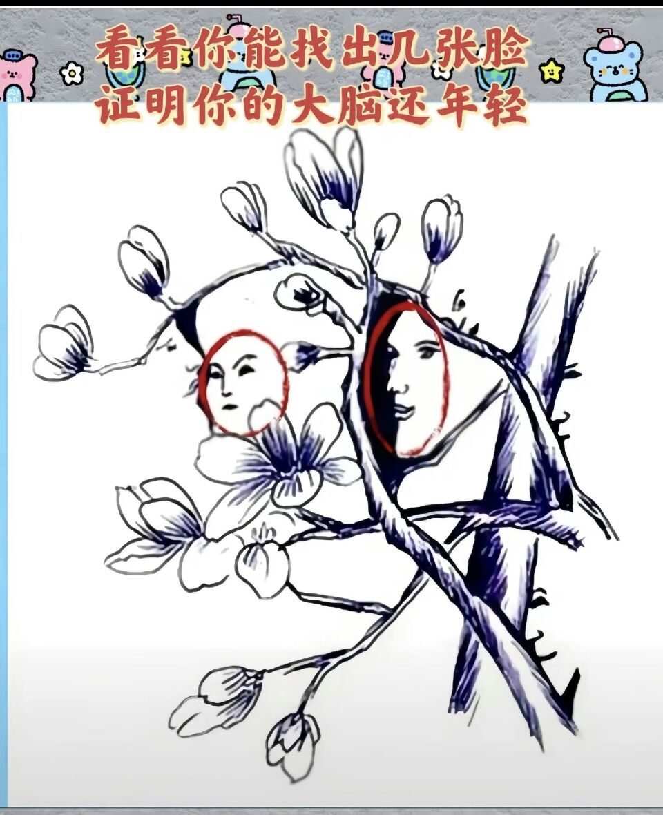 不知为何,这几天,记者在某音总刷到各种判断阿尔茨海默病的测试图,比如:你能在树上看到10张脸吗?比如:能找到图片中有16只跳舞小熊?再比如:图中谁没有戴口罩……