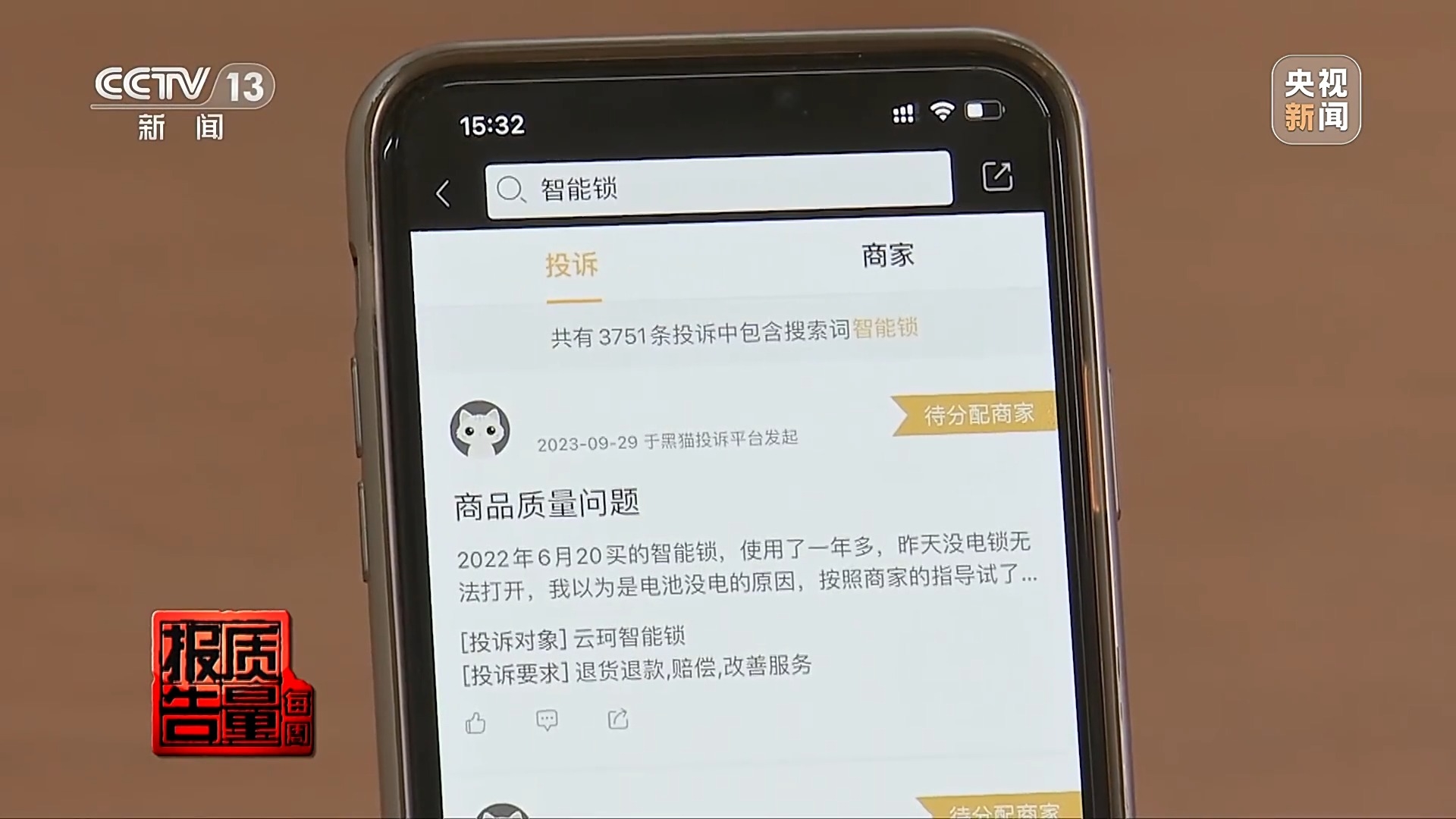 然而随着电子门锁的持续热销,近年来消费者反映电子门锁质量不可靠的投诉也在持续上升。在一家专业消费投诉平台,记者搜索“智能锁”显示有三千多条投诉记录。
