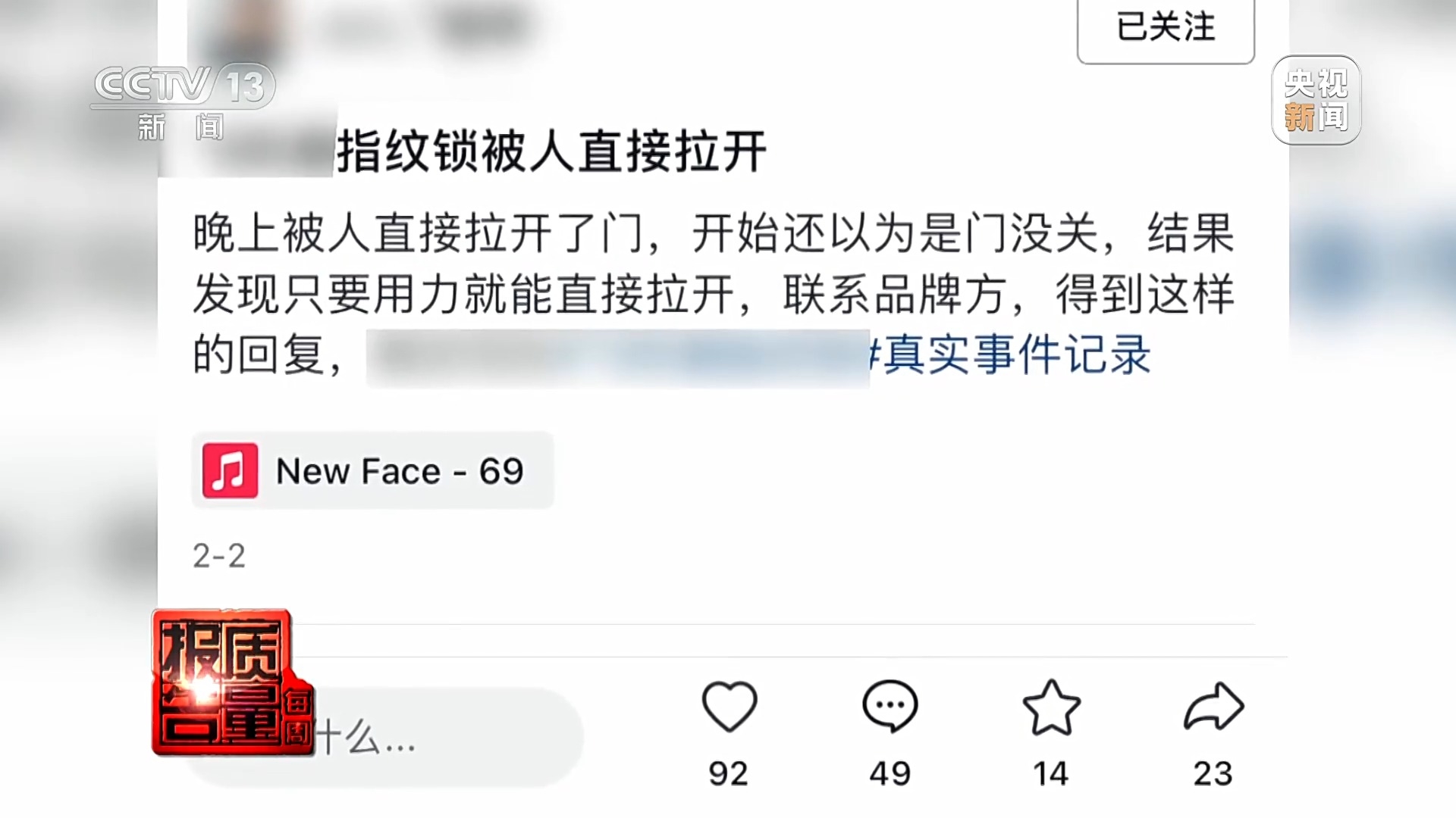 据消费者表示,心有余悸之余,他对自家电子门锁的质量产生了怀疑,决定测试一下。