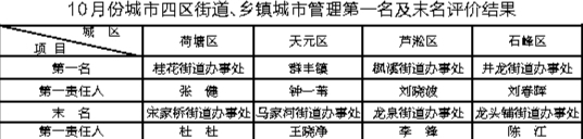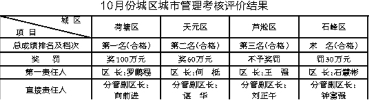 本报讯(株洲晚报融媒体记者/伍靖雯 通讯员/城关) 根据《城区城市管理考核评价办法》,市城市管理委员会办公室发布10月份城市管理考核评价结果。