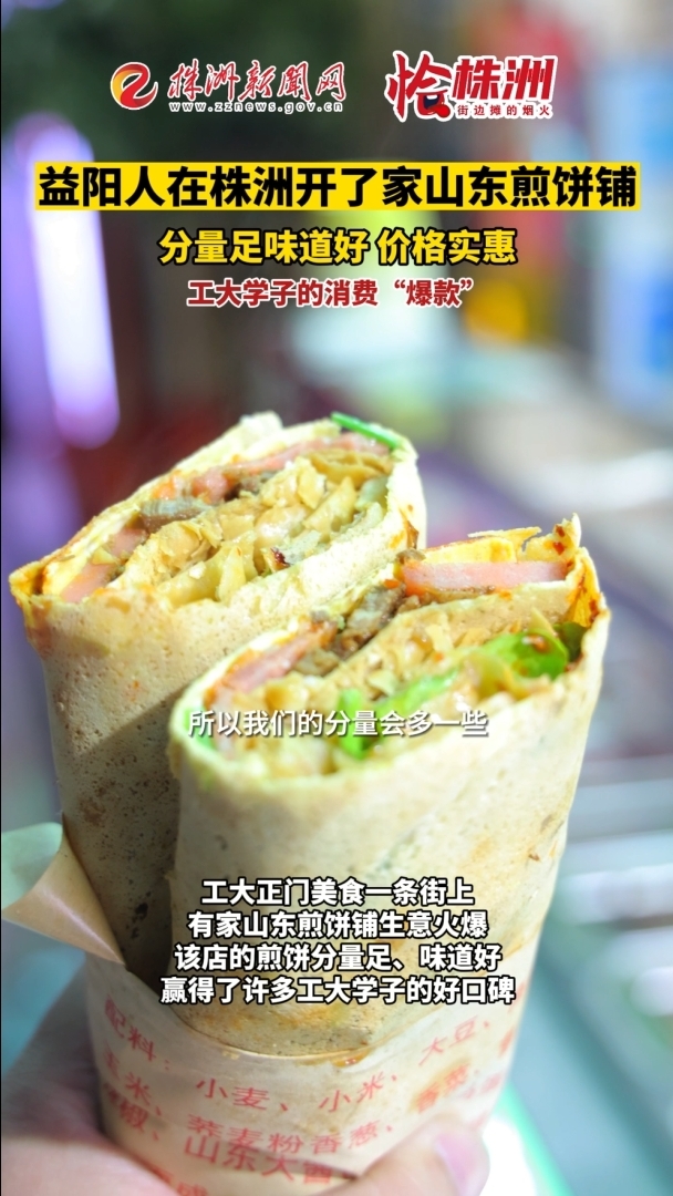 益阳人在株洲开了家山东煎饼铺,分量足味道好价格实惠。湖南工大正门美食一条街上,有家山东煎饼铺生意火爆,店子的煎饼分量足、味道好,赢得得了许多湖南工大学子的好口碑。