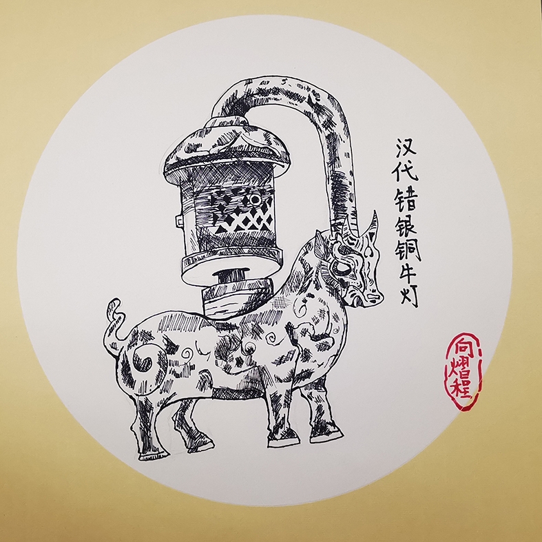 汉代错银铜牛灯