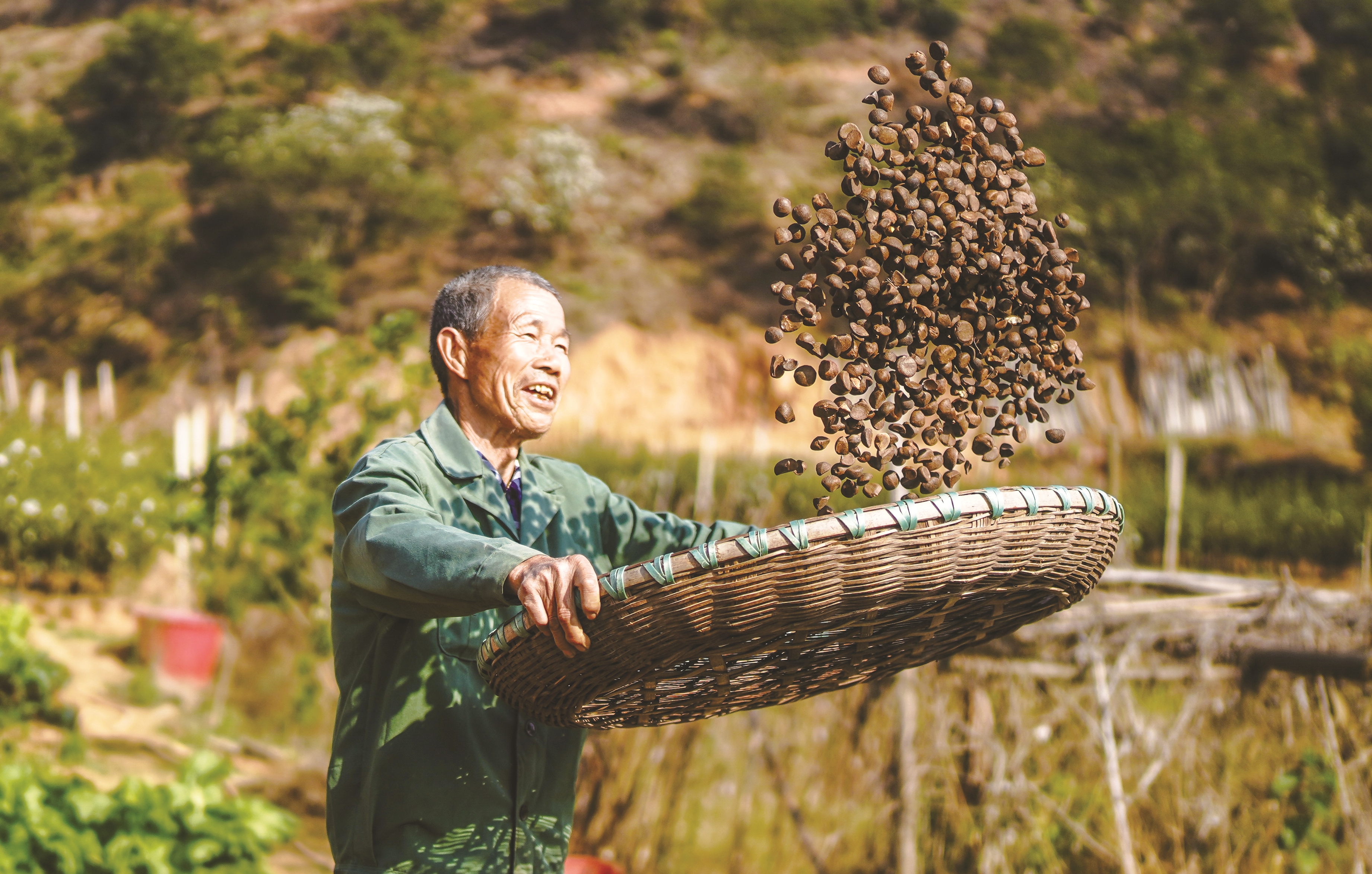 11月27日,在渌口区南洲镇北洲村,油茶喜获丰收。趁着晴好天气,村民们忙着晒油茶籽。记者/刘震 摄