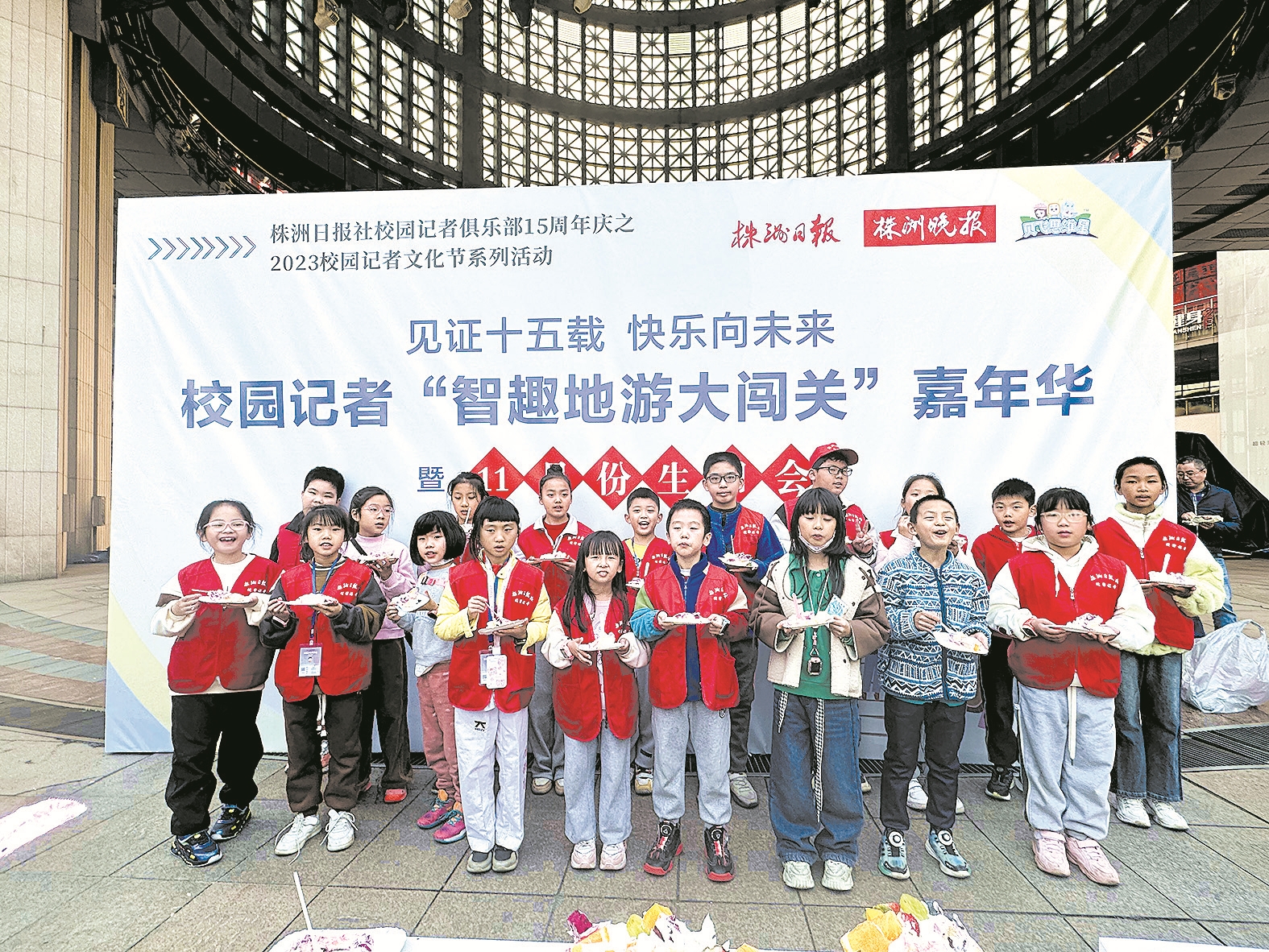 本报讯(株洲晚报融媒体记者/谭筱 刘昭彤) 株洲日报社校园记者是一个光荣的头衔,也是一个幸福的大家庭。11月25日下午,校园记者“智趣地游大闯关”嘉年华暨11月份生日会活动在神农城日丰庭举行,120余组校园记者家庭参与。